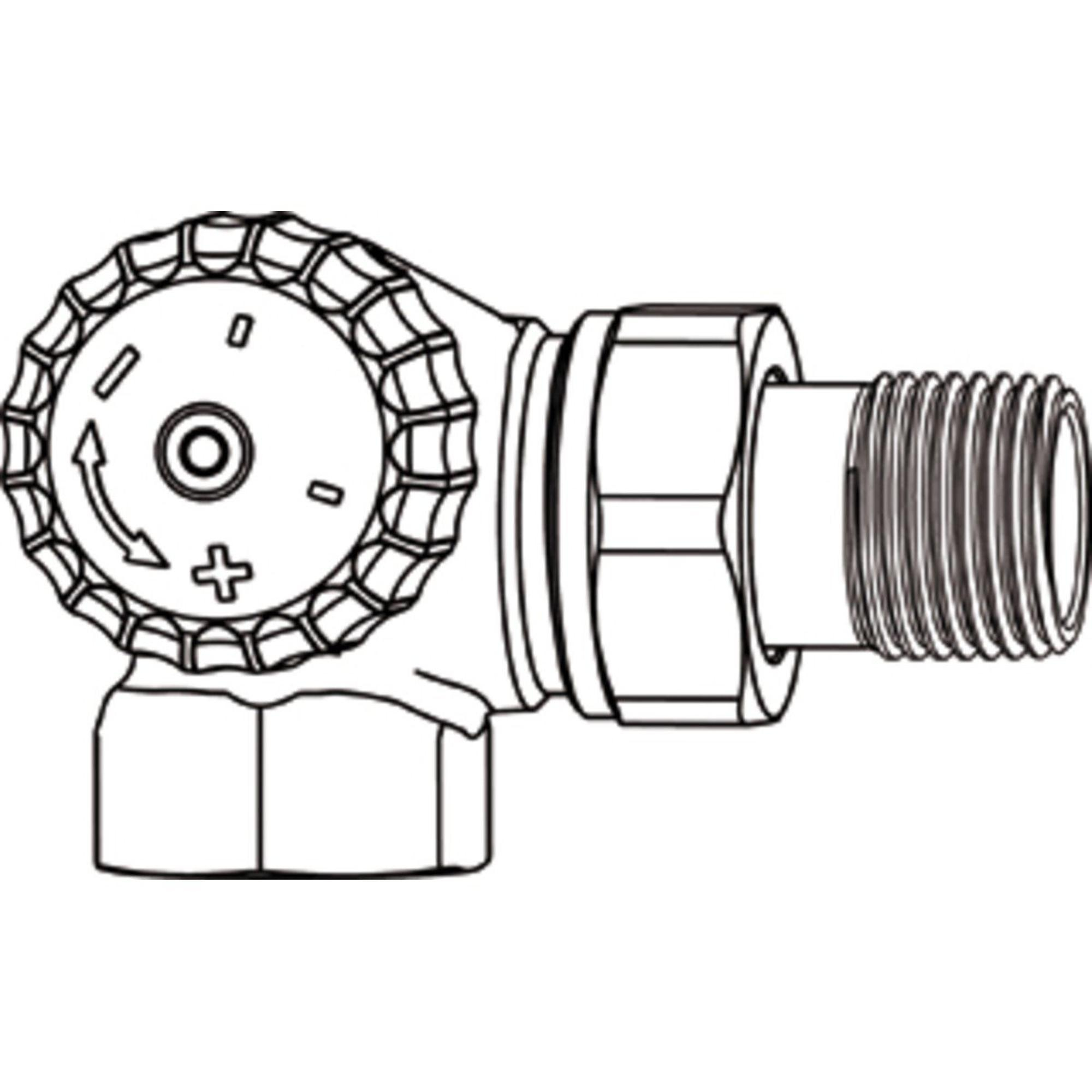 Heimeier V exact radiatorafsluiter dubbel haaks links 3/8 vernikkeld
