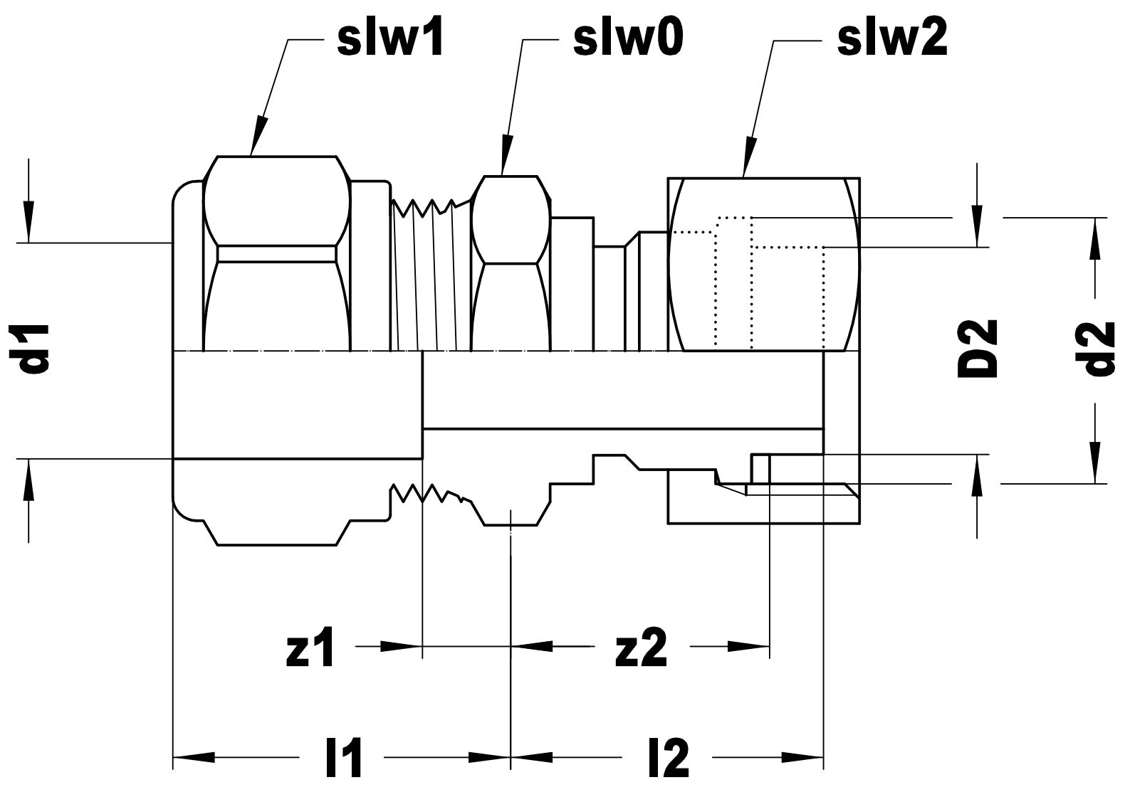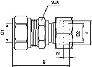 Vsh Knelfitting 3 delige koppeling 3 4 bi.x 22 mm met pakking messing