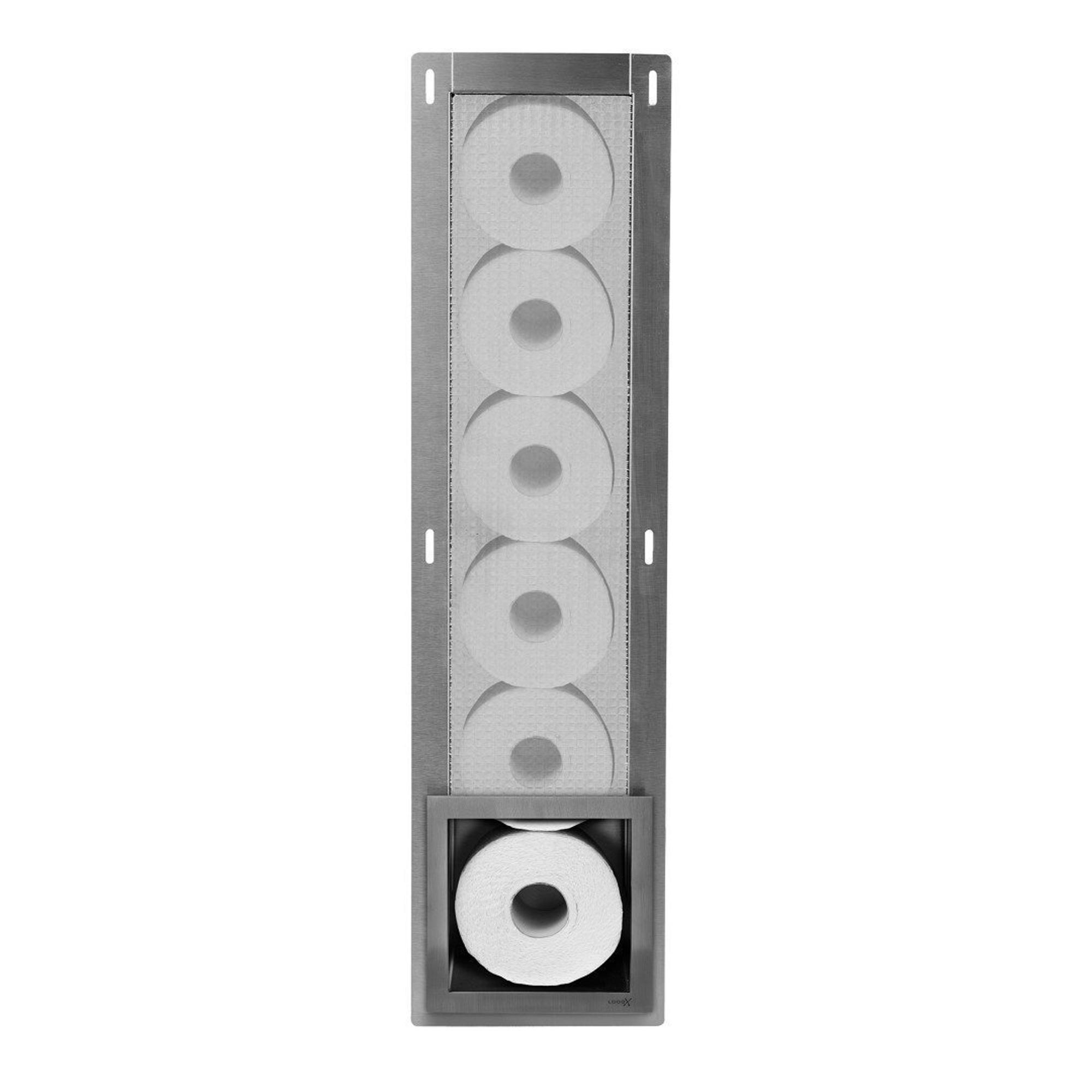 Looox Closed Inbouw Reserverolhouder 17.3x74x14cm - 6 rollen - RVS geborsteld