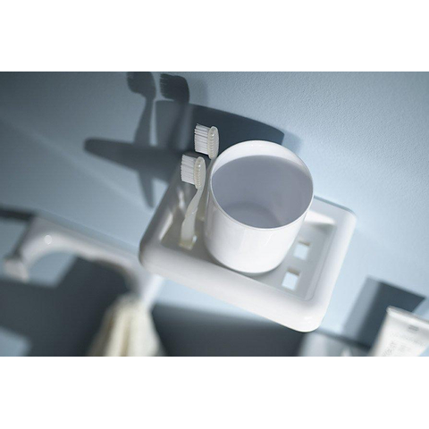 Handig met kinderen: deze onbreekbare, kunststof beker. Het ontwerp oogt simpel en stevig, de beker is licht van gewicht en de houder is eenvoudig aan de wand te monteren. Handig extra: in de houder kunt u vier tandenborstels hangen. De beker is getest en voldoet aan de Europese normen voor artikelen die met voedsel in aanraking komen. Dit betekent dat de beker geen gevaarlijke stoffen afgeeft en dat u er gegarandeerd veilig uit kunt drinken.