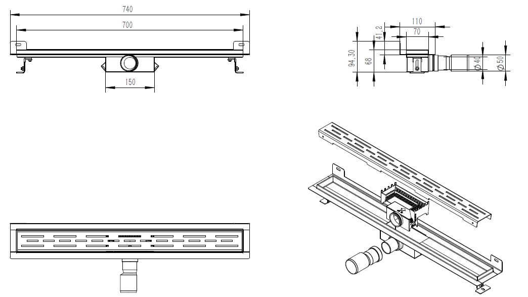 Naast zijn esthetische waarde is de Saniclass Douchegoot ook uiterst functioneel. Met een zijuitloop voor efficiënte waterafvoer en een ondiepe constructie die gemakkelijk in de vloer kan worden ingebouwd, biedt deze douchegoot optimale prestaties. Het duurzame roestvrijstalen materiaal garandeert een lange levensduur en weerstaat dagelijks gebruik zonder problemen. Een praktische en betrouwbare keuze voor jouw douche-installatie.