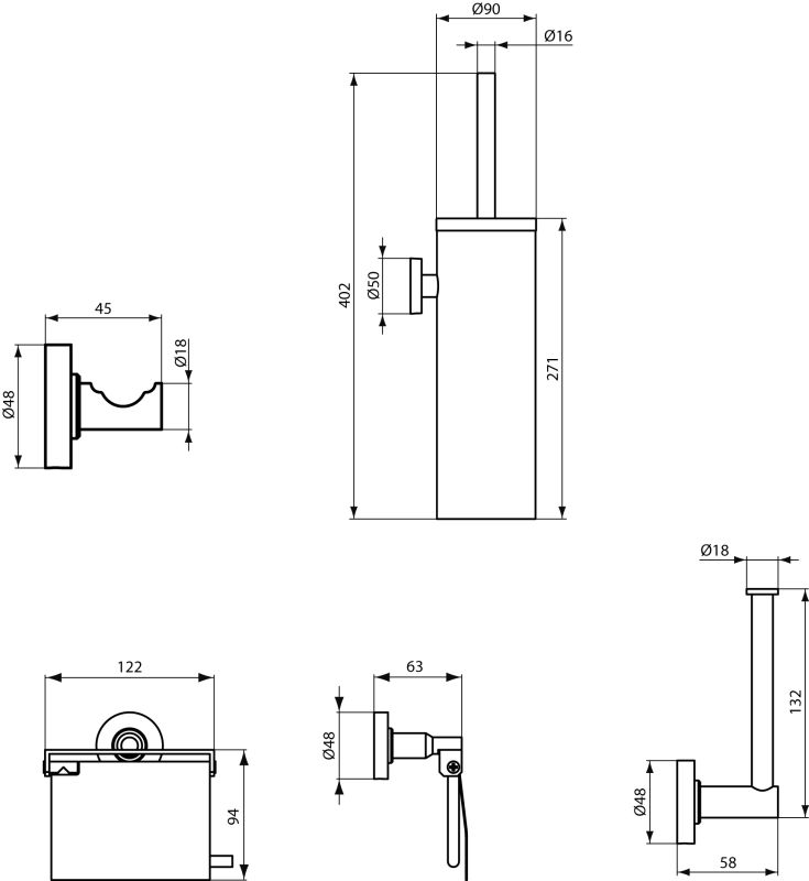 Ideal Standard Iom toiletaccessoires set met handdoekhaak closetrolhouder met deksel met closetborstelgarnituur en reserverolhouder chroom