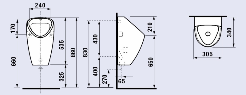 - Hoewel het ontwerp eenvoudig is, zonder extra functies zoals een deksel, damesuitvoering, mikpunt, of antibacteriële behandeling, biedt het urinoir toch een betrouwbare en essentiële bijdrage aan elke toiletruimte.