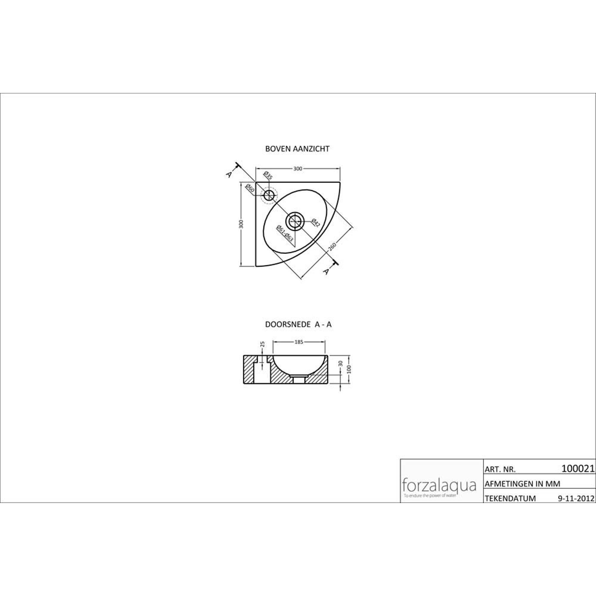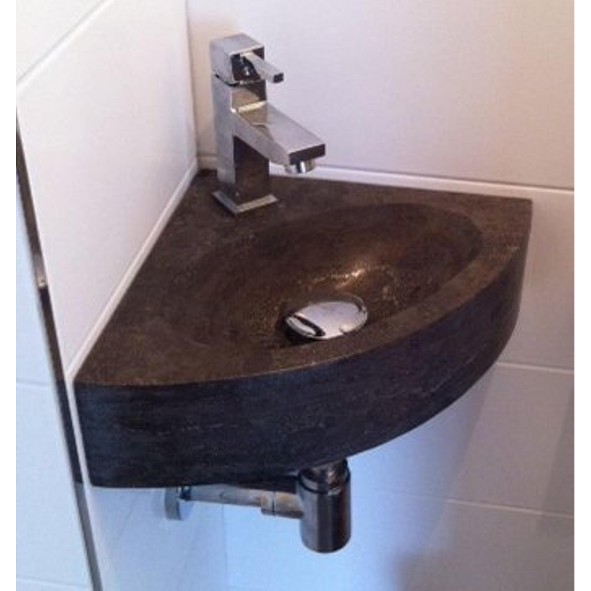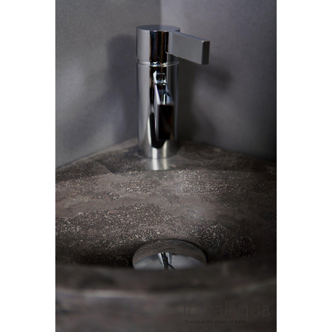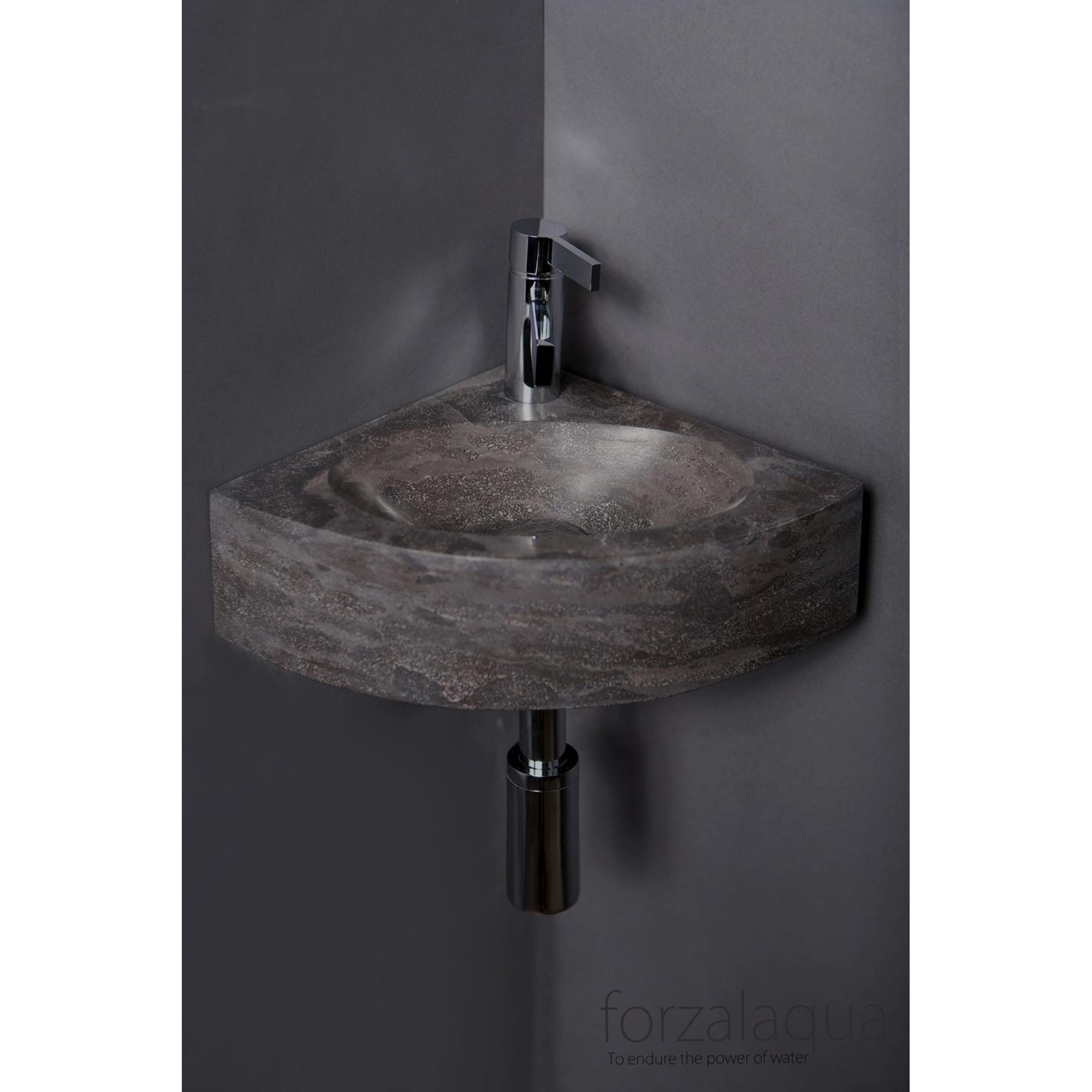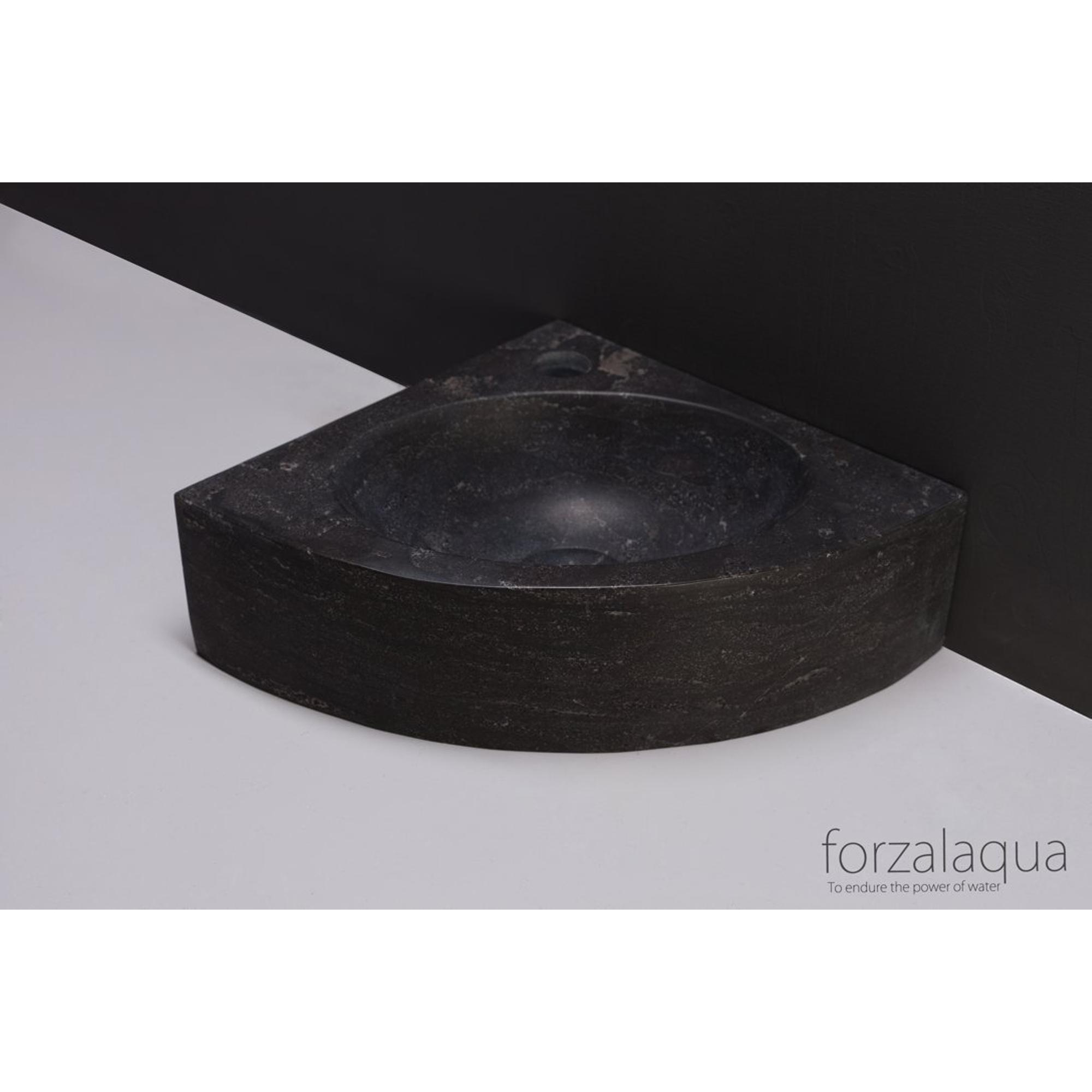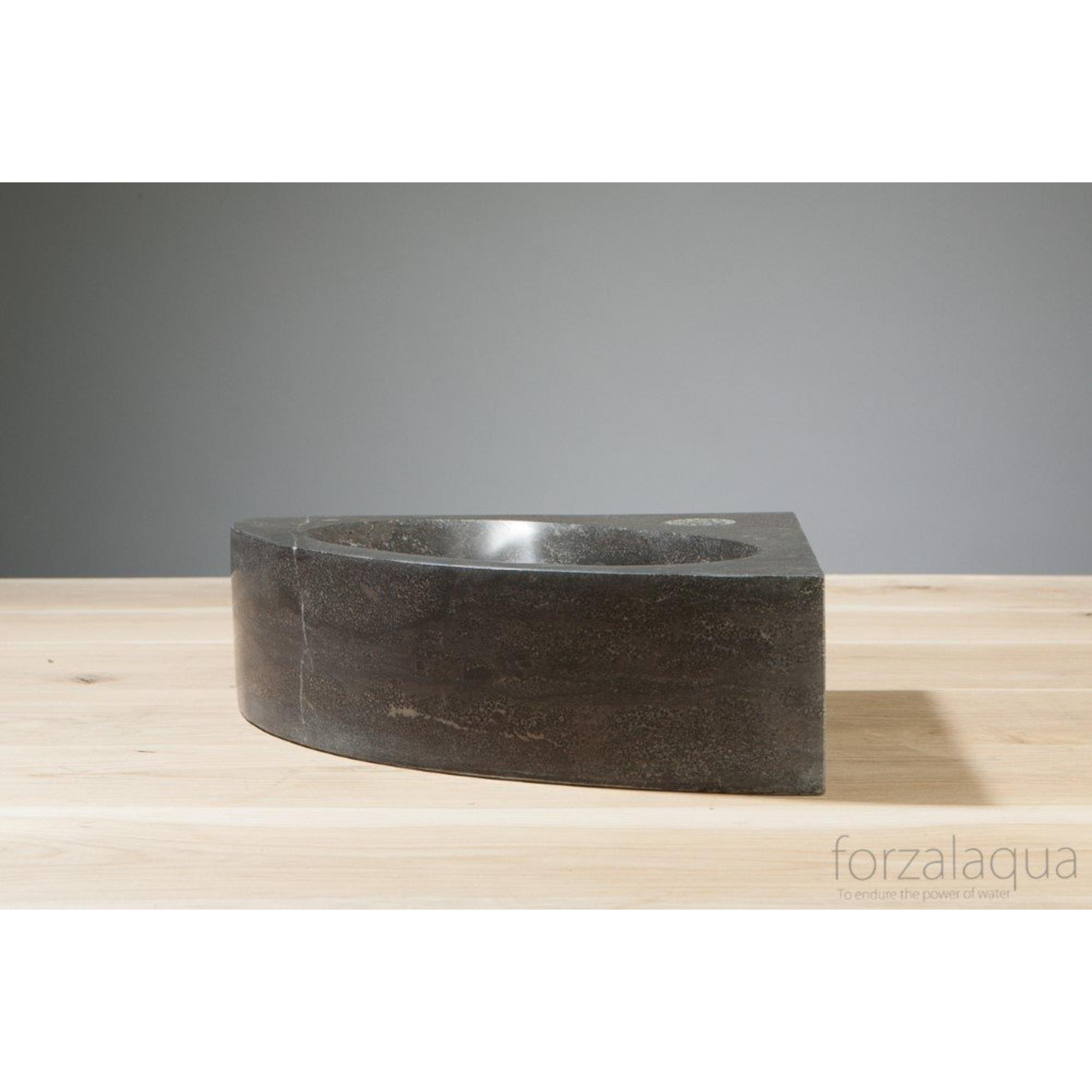 Forzalaqua Turino hoekftontein 30x30x10cm 1 kraangat zonder kraan natuursteen Hardsteen gezoet
