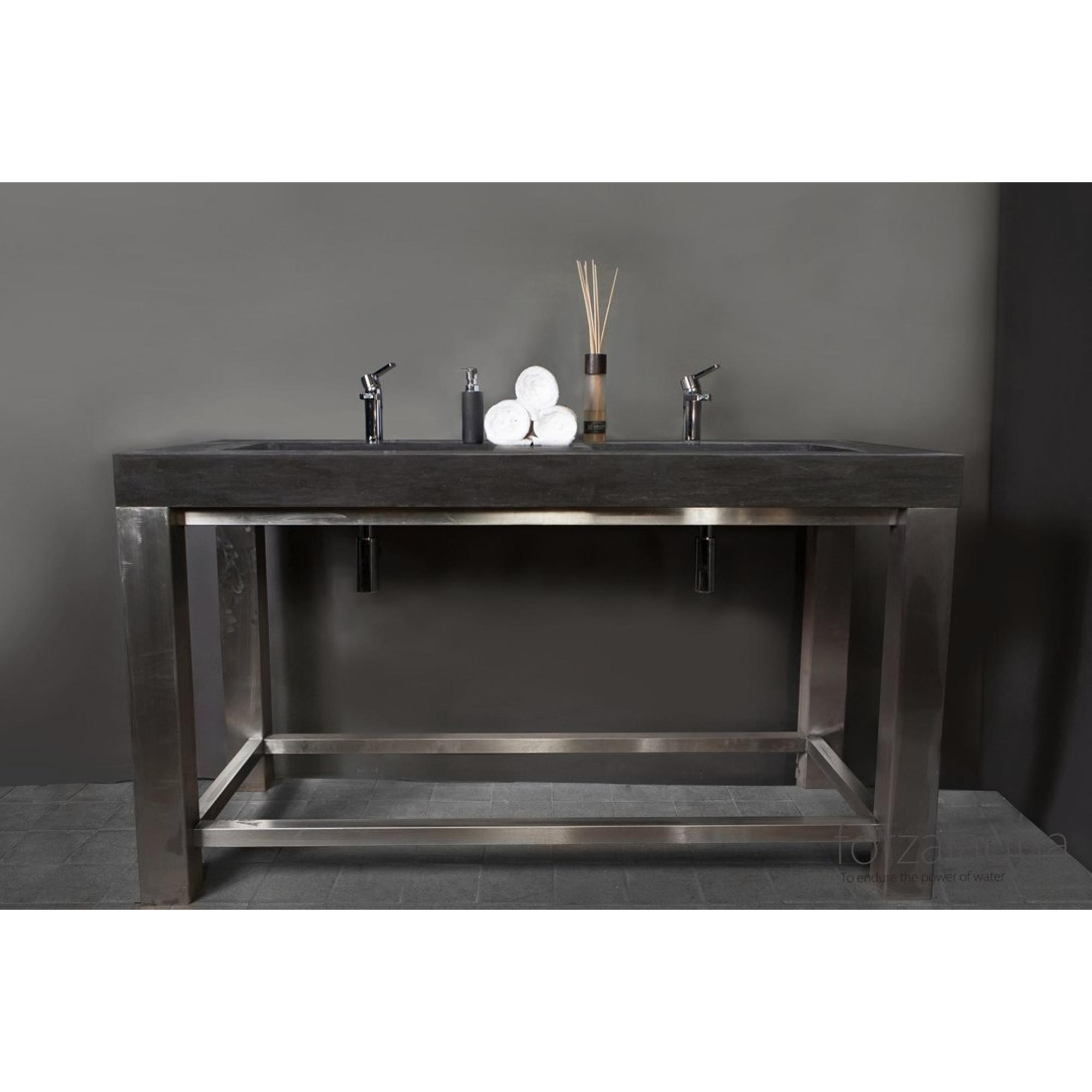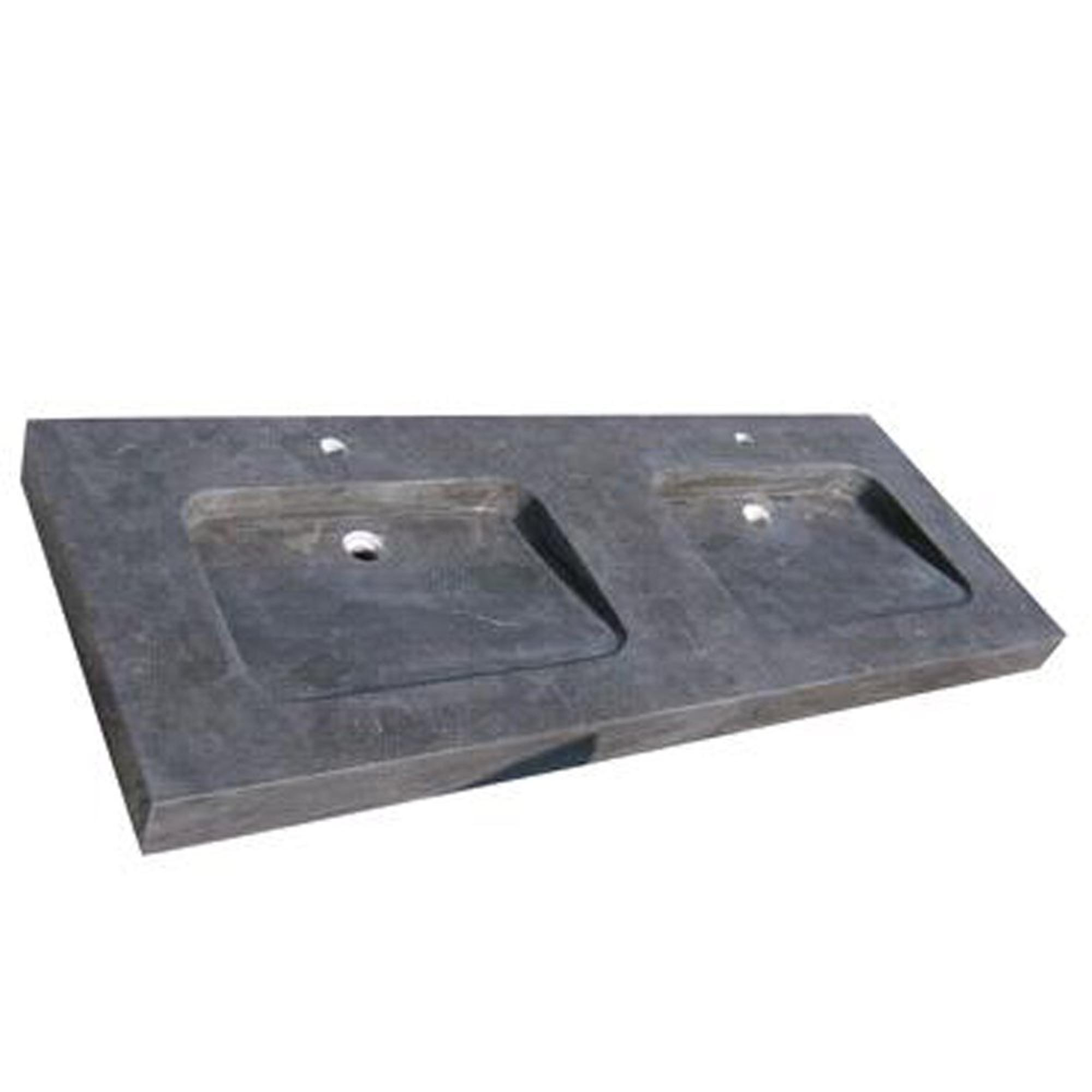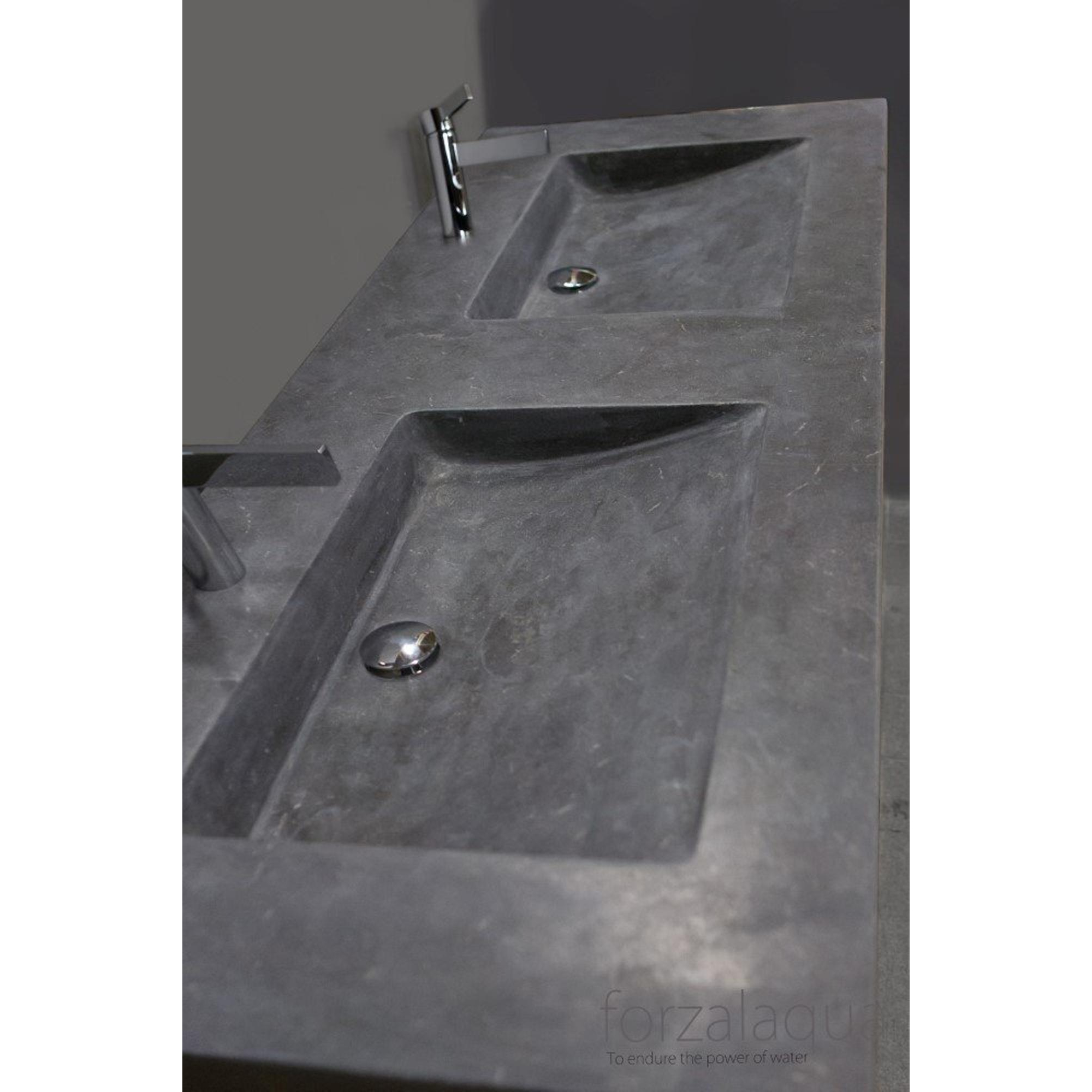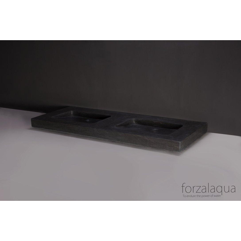 Forzalaqua Napoli wastafel 160x60x9cm Rechthoek 2 kraangaten 2 wasbakken Natuursteen Hardsteen gezoet