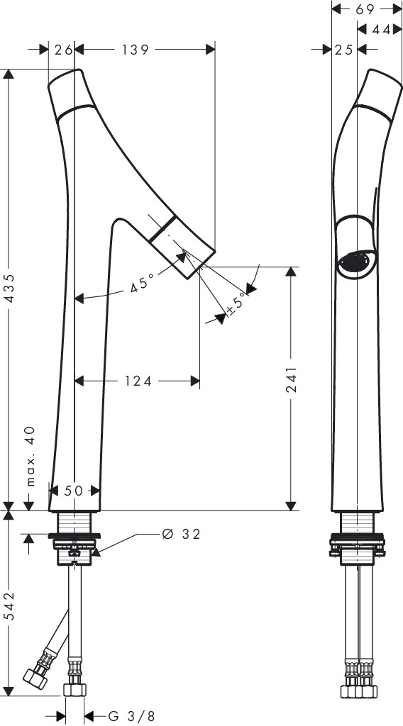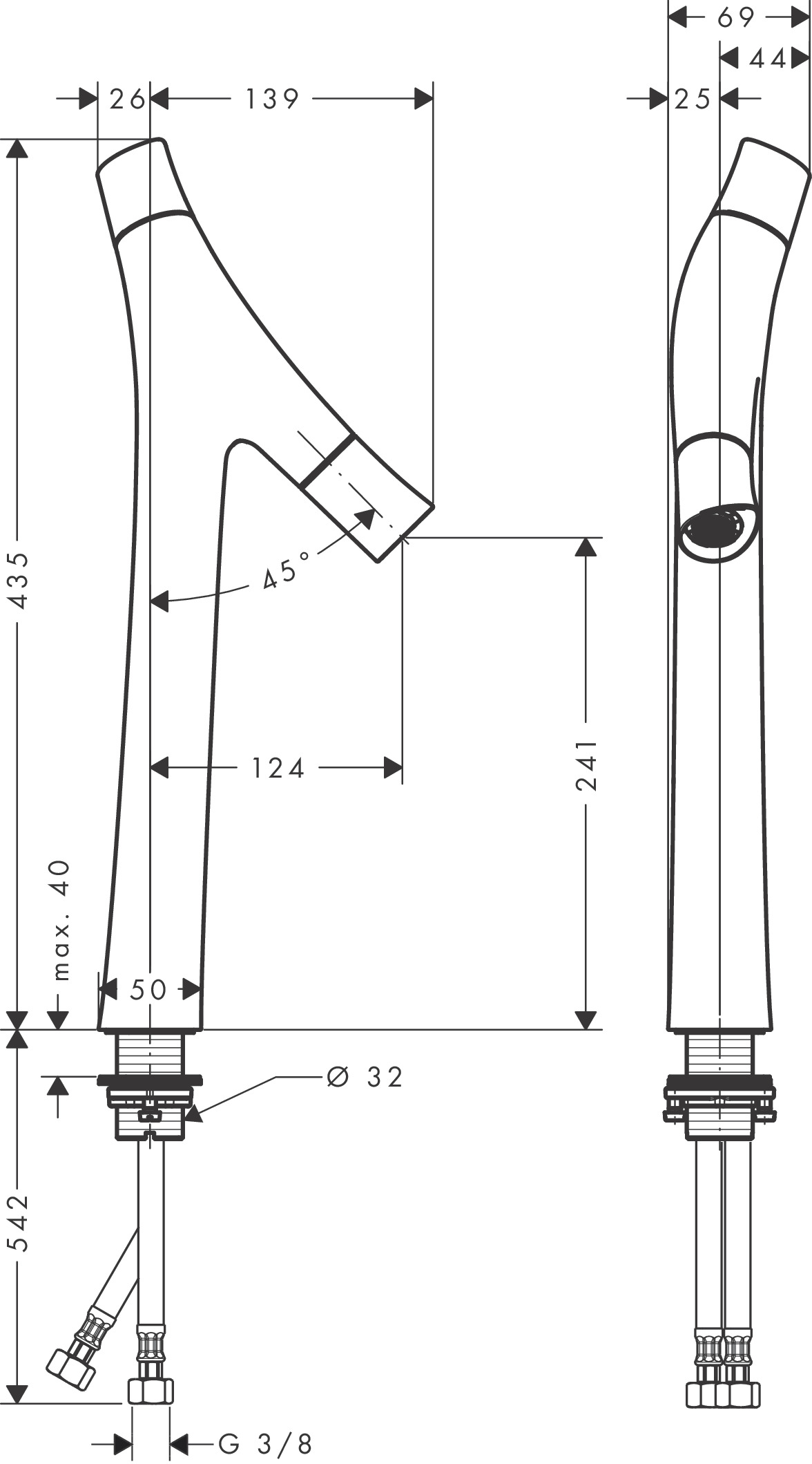 AXOR Starck Organic 2 greeps wastafelkraan verhoogd 43.5cm chroom