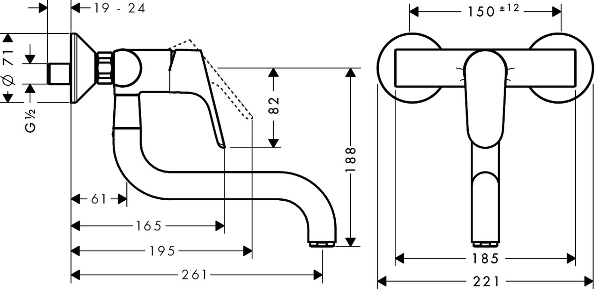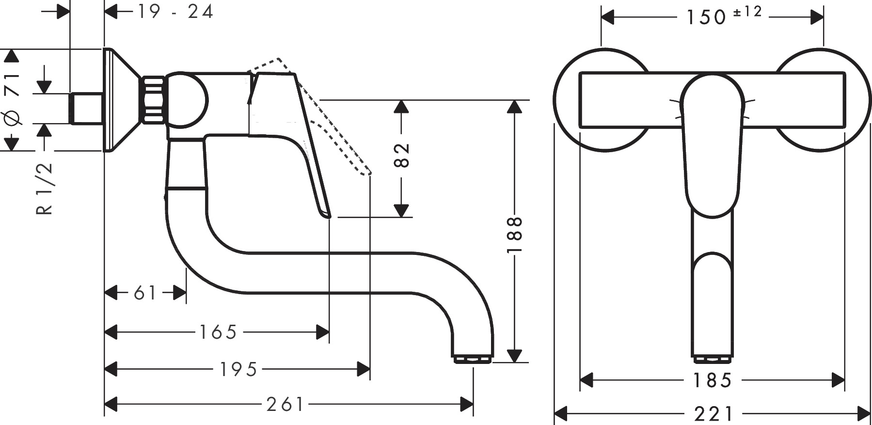 - Eenvoudige installatie: wordt aan bestaande wateraansluitingen gemonteerd (S-aansluitingen, DN15). Boorgatmaat: 150 ± 12 mm