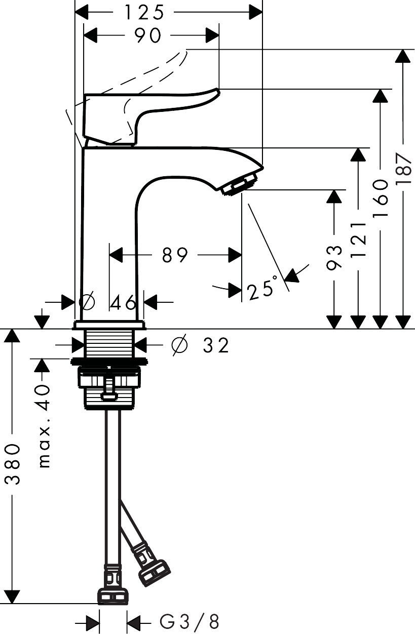 De ééngreeps wastafelmengkraan Metris 100 voor handenwastafels zonder afvoergarnituur van hansgrohe overtuigt door zowel de grote bewegingsvrijheid, de comfortabele bediening, de ingetogen vormgeving als de technische eigenschappen. De grote afstand tussen uitloop en wastafel zorgt voor meer bewegingsvrijheid en dus meer ruimte voor prettig handenwassen (ComfortZone 110). Hoe groter de ComfortZone, des te flexibeler het gebruik.
