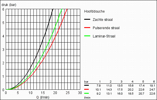 doorstroming enkele straal bij 3 bar