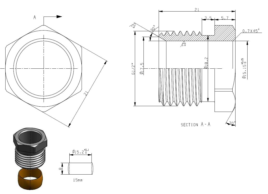 Riko Knelset - 1/2"x15 mm - extra lang - vernikkeld