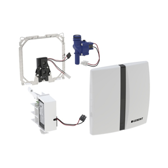 Met een betrouwbare infraroodsensor past dit systeem zich automatisch aan gebruikersbehoeften aan. De spoeltijd en intervallen zijn instelbaar, en het systeem ondersteunt voorspoelen en dynamische aanpassingen. Het spoelprogramma kan eenvoudig worden ingesteld via Bluetooth® met de Geberit Control-applicatie. Daarnaast kan de functie met een service-afstandsbediening worden beheerd.