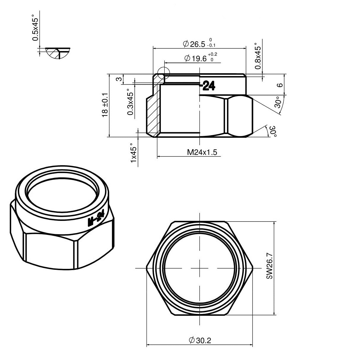 Riko 2-delige kopp.puntstuk 15mm x M-24