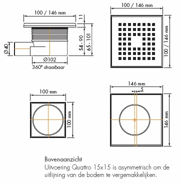 Easy Drain Aqua quattro vloerput abs 10x10cm horizontaal