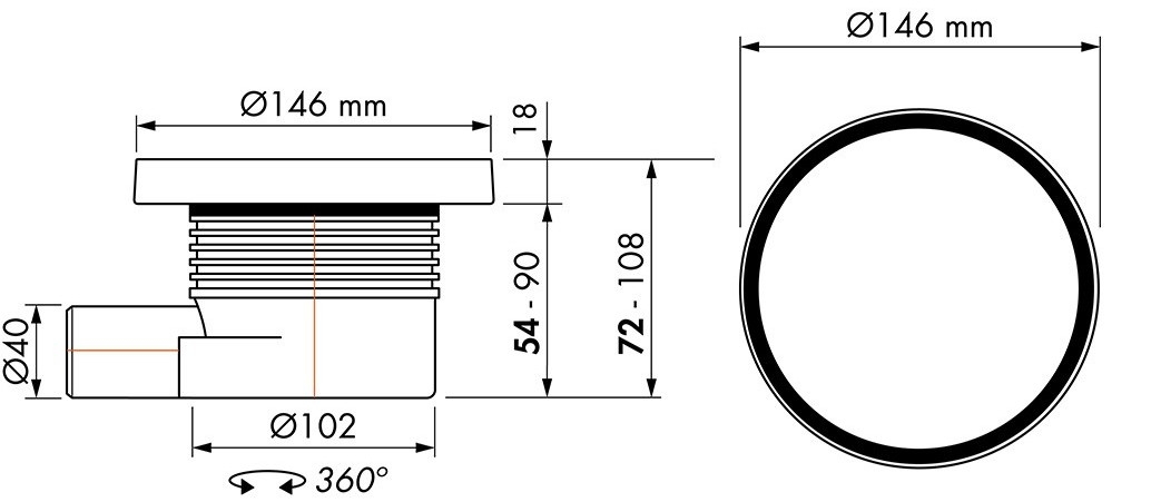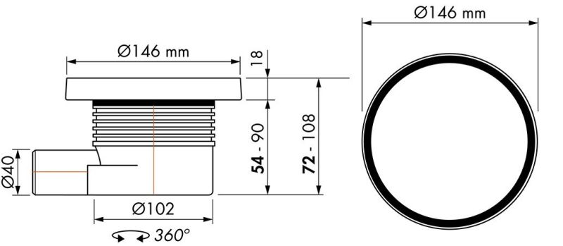 Easy Drain Aqua Round vloerput met ABS afwerkdeel met RVS rooster en zijuitlaat O15cm inbouwdiepte 72 108mm waterslot 50 tot 25mm AQUA RDX15 MSI6