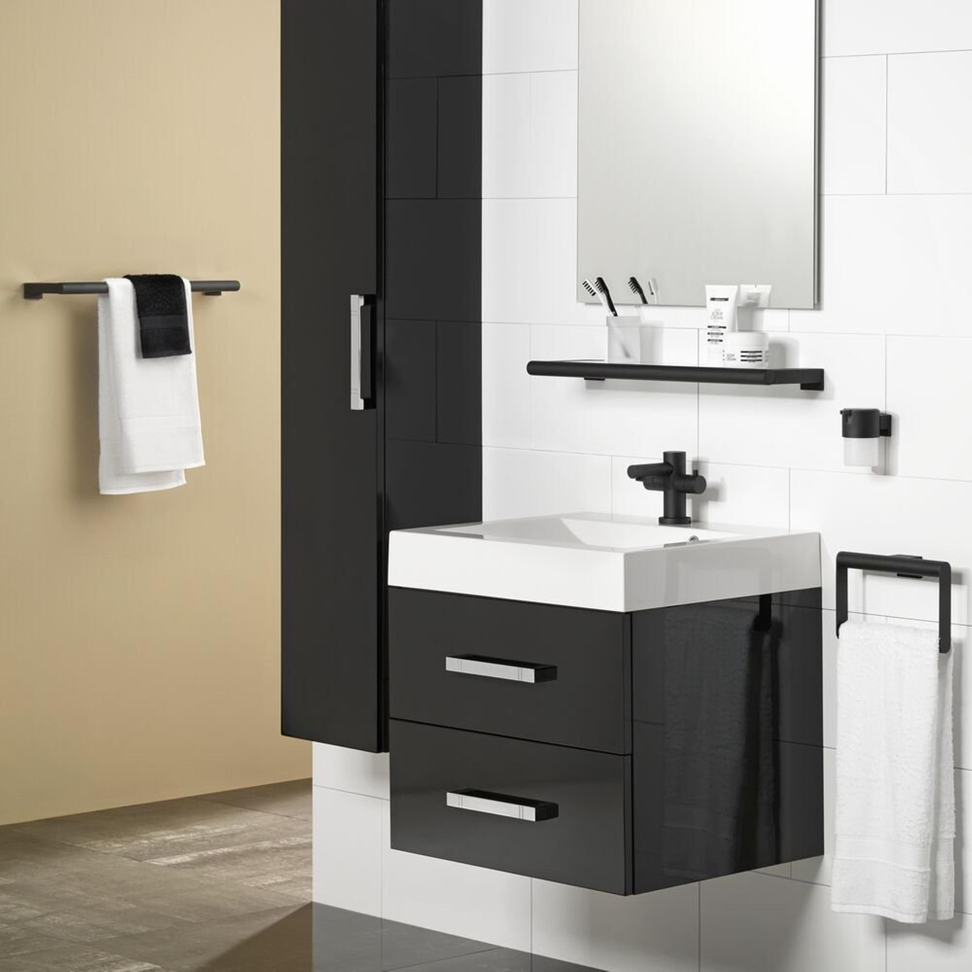 Het handdoekrek uit de Tiger Bold serie is uitgevoerd in mat zwart en heeft 1 brede draagarm voor het ophangen van handdoeken. Het accessoire kan eenvoudig aan de muur bevestigd worden zonder dat de bijgeleverde bevestigingsmaterialen zichtbaar zijn. De Bold serie bevat tevens een groot aantal aanvullende accessoires voor in de badkamer of het toilet.