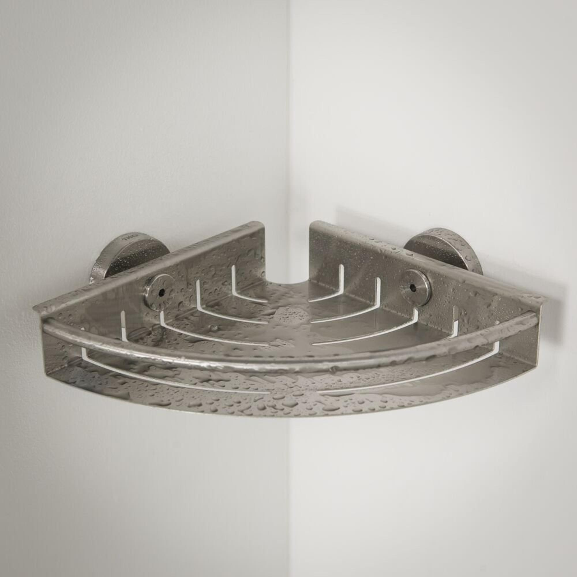 Het Tiger Boston douchemandje klein uitgevoerd in geborsteld RVS is dé oplossing voor het opbergen van de diverse flacons met shampoo en douchegel in de badkamer. De vlakke bodem en de hoge rand van de douchekorf zorgen ervoor dat de bad- en doucheproducten stevig in het rekje staan. Door de plaatsing van het douchemandje in de hoek wordt de ruimte, in bijvoorbeeld de douchecabine, optimaal benut. Met de bijgeleverde bevestigingsmaterialen is de hoekkorf eenvoudig aan de wand te bevestigen zonder dat deze bevestigingsmaterialen zichtbaar zijn. De Boston serie bevat tevens een groot aantal aanvullende accessoires voor de badkamer en het toilet in dezelfde stijl.