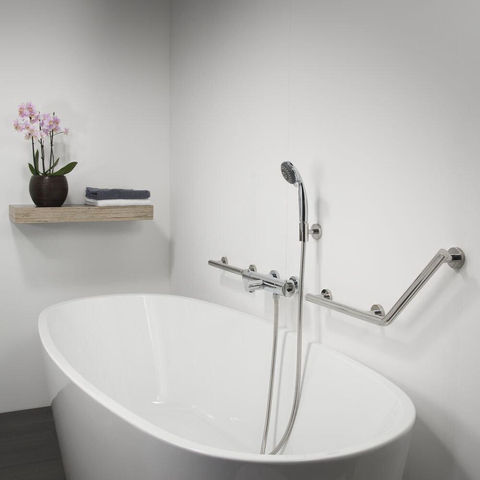 De wandbeugel 135º rechts uit de Tiger Boston Comfort & Safety serie is uitgevoerd in de kleur RVS gepolijst en biedt extra ondersteuning en comfort tijdens het gebruik van het bad, de douche of het toilet. De ergonomische veiligheidsgreep heeft een diameter van 25 mm en het horizontale gedeelte heeft een maximale belastbaarheid van 150 kg. Daarnaast kan er een extra antislip grip op de veiligheidsgreep gemonteerd worden, deze is apart verkrijgbaar.