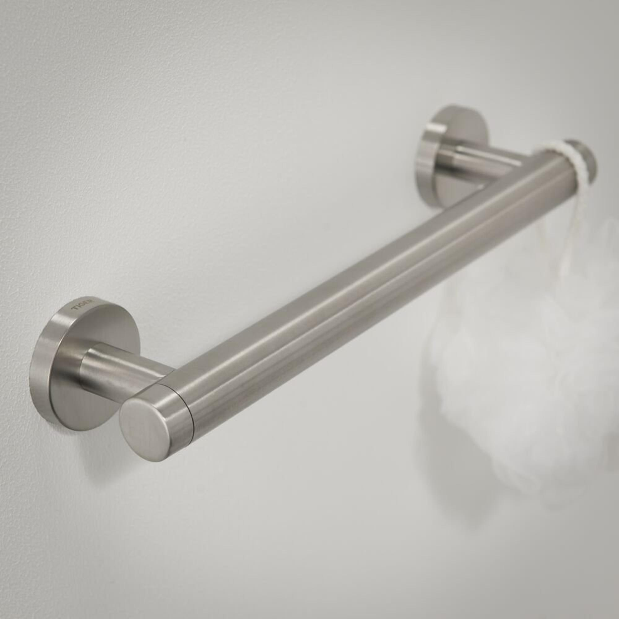 De wandbeugel 30 cm uit de Tiger Boston Comfort & Safety serie is uitgevoerd in de kleur RVS geborsteld en biedt extra ondersteuning en comfort in de badkamer, de douche en het toilet. De ergonomische veiligheidsgreep heeft een diameter van 25 mm en kan zowel horizontaal, verticaal als diagonaal geplaatst worden zodat ondersteuning wordt geboden waar noodzakelijk. De maximale belastbaarheid bedraagt 150 kg. Daarnaast kan er een antislip grip op de wandbeugel gemonteerd worden, deze is apart verkrijgbaar.