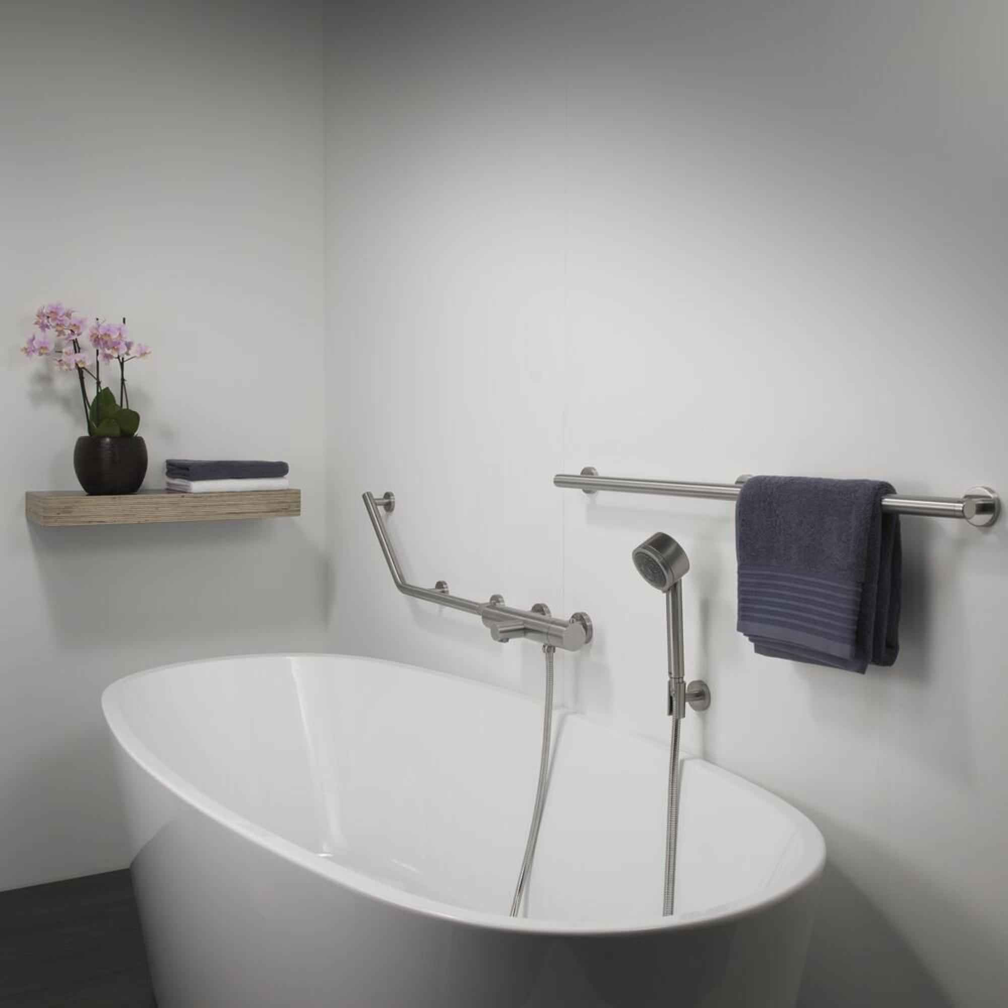 De wandbeugel 90 cm uit de Tiger Boston Comfort & Safety serie is uitgevoerd in de kleur RVS geborsteld en biedt extra ondersteuning en comfort in de badkamer, de douche en het toilet. De ergonomische veiligheidsgreep heeft een diameter van 25 mm en kan zowel horizontaal, verticaal als diagonaal geplaatst worden zodat ondersteuning wordt geboden waar noodzakelijk. De maximale belastbaarheid bedraagt 150 kg. Daarnaast kan er een extra antislip grip op de veiligheidsgreep gemonteerd worden, deze is apart verkrijgbaar.
