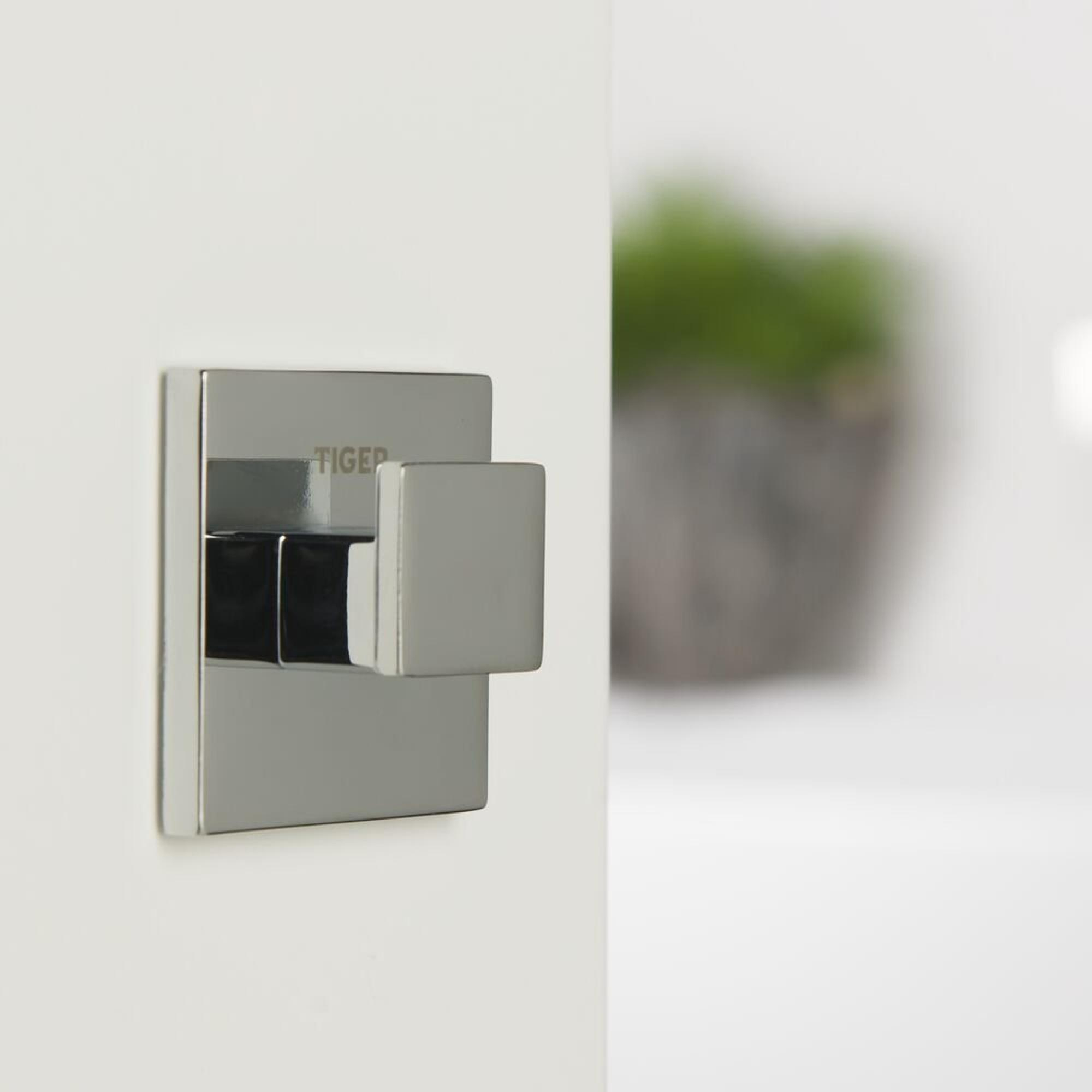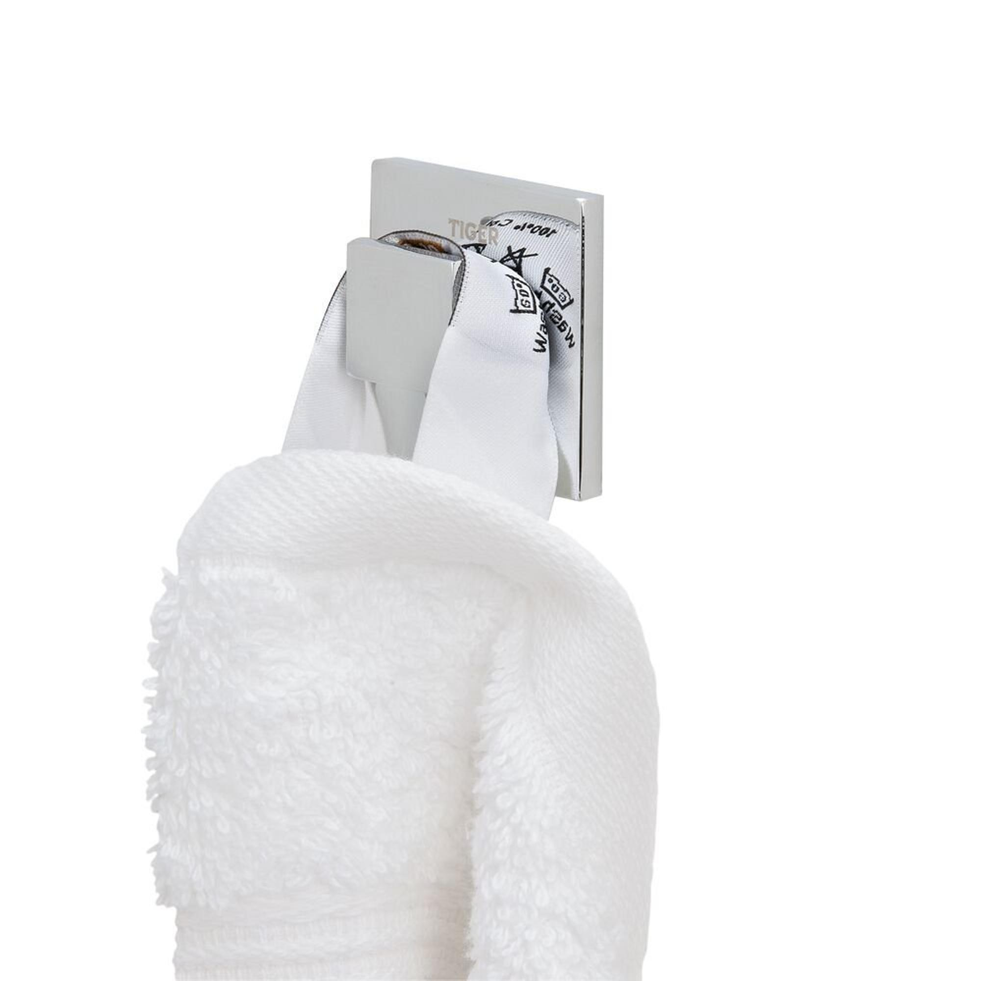 De haak uit de Tiger Items serie is uitgevoerd in de kleur chroom en voorzien van dubbelzijdige tape waardoor het artikel in een handomdraai te monteren is. De haak is geschikt voor het ophangen van artikelen tot een gewicht van 1 kg. Het Items concept bestaat tevens uit een groot aantal aanvullende accessoires, badkamermeubilair en kranen, allemaal in één stijl.