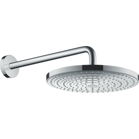 De Raindance Select S 300 hoofddouche is een originele regendouche van hansgrohe. Zoals in een tropische zomerregen hult de 300 mm grote douchekop het lichaam in een gelijkmatige, weldadige waterstroom en verwent met twee op elkaar afgestemde straalsoorten. RainAir mengt het water met lucht voor een ontspannende douche (AirPower). Dat zorgt voor wonderbaarlijk zachte en volle druppels die de volledige warmte van het water aan de huid afgeven en minder spatten. De krachtige straalsoort Rain vitaliseert en verfrist. Hij is ideaal om ’s morgens wakker te worden of shampoo uit te spoelen.