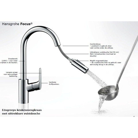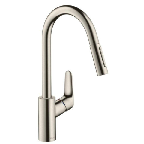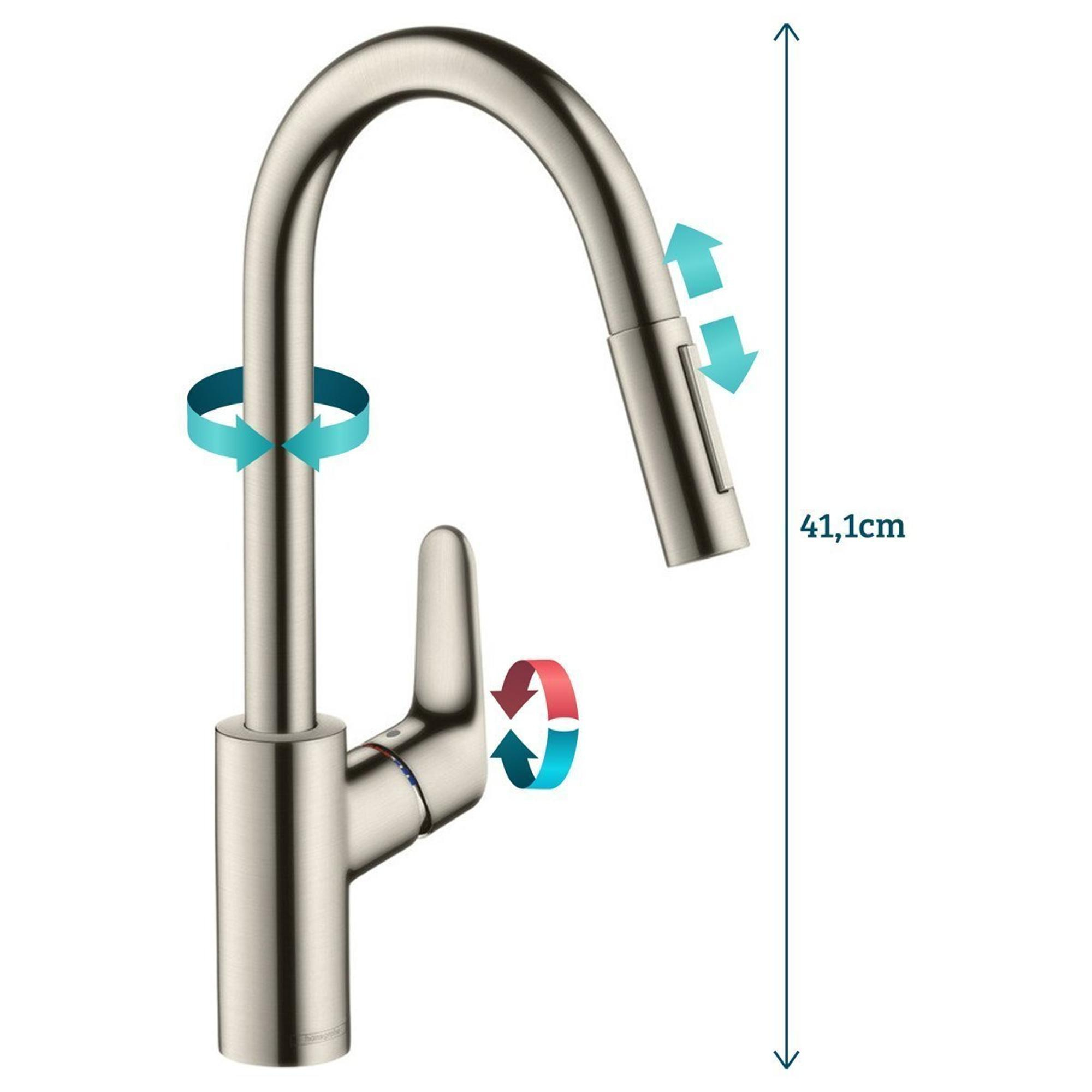 Hansgrohe Focus keukenkraan met uittrekbare vuistdouche RVS look