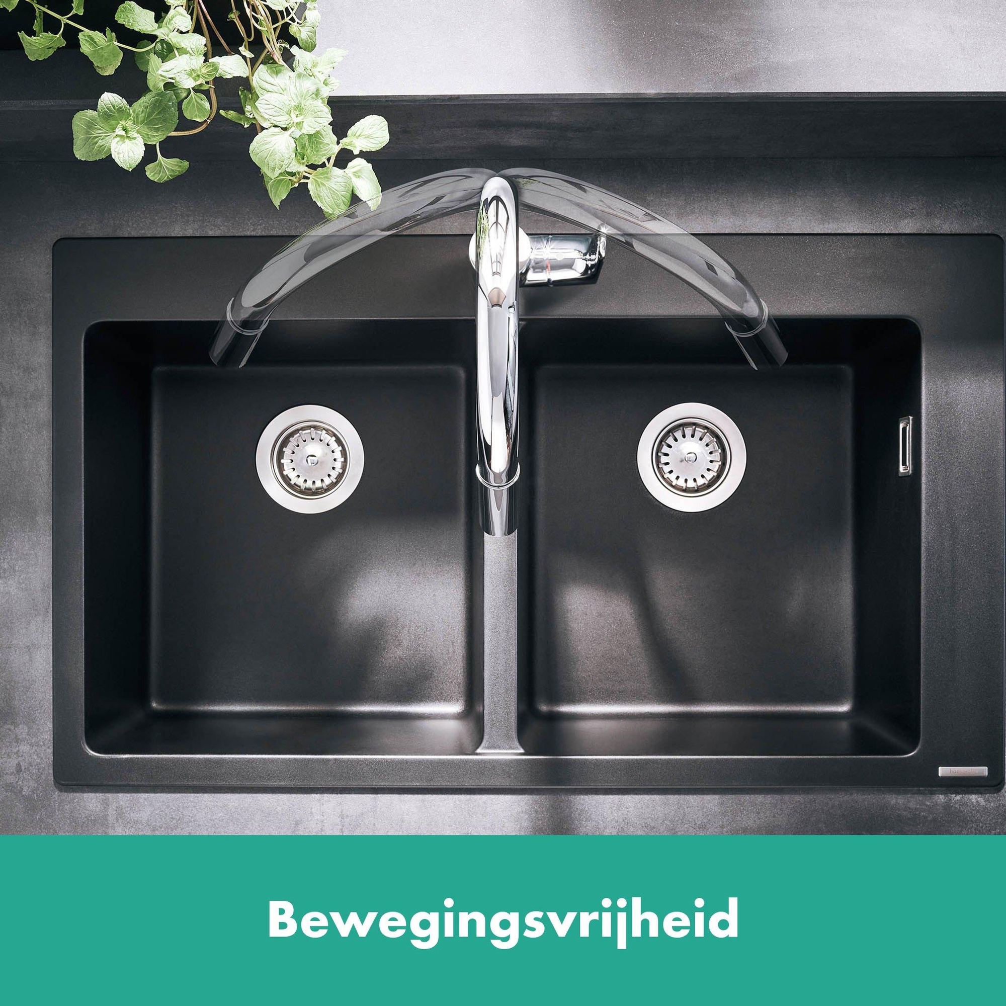 De Focus ééngreeps keukenmengkraan 240 met uittrekbare vuistdouche van Hansgrohe biedt een totaalpakket. De kraan is comfortabel gebruik, heeft een strak design en levert water waar je het nodig hebt. Deze kraan heeft een laminaire straal en douchestraal. De kraan is ook voorzien van een Quick-Connect doucheslang waardoor je de handdouche kunt uittrekken. Water is hiermee altijd in je nabijheid. De Focus ééngreeps keukenmengkraan 240 is bedoeld voor installatie in een keuken. De kraan heeft een uittrekbare doucheslang en je hebt de keuze uit een laminaire straal en douchestraal. De douchestraal kan worden vastgezet. Wanneer je de kraan sluit, zal de straal automatisch overschakelen naar de laminaire straal. Je bedient de kraan eenvoudig door middel van een duurzaam keramisch binnenwerk met comfortabele handgreep. Focus ééngreeps keukenmengkraan 240 met uittrekbare vuistdouche. Afmetingen: 77 x 557 x 310 mm. Kleur: chroom. Draaibereik uitloop: 150°. Bediening door middel van duurzaam keramisch binnenwerk. Keuze uit laminaire straal en douchestraal. ComfortZone - Geen vervelende waterspetters en -vlekken meer. Met de ComfortZone bepaal je een optimale hoogte tussen wastafel en kraan.QuickClean - Kalk en vuil zijn eenvoudig te verwijderen door zacht te wrijven over de flexibele siliconennoppen.Met het sluiten van de kraan schakelt de handdouche automatisch over naar een laminaire straal. Dankzij de Quick-Connect doucheslang kun je de handdouche uittrekken. Eenvoudig te reinigen.