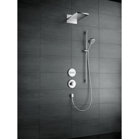 Met deRaindance Select S 120 doucheset zorgt hansgrohe voor veel douchegenot. Veel doordachte details zoals de Unica douchestang (0,90 m), de anti-kink doucheslang en de praktische zeepschaal maken het douchen onmiddellijk comfortabeler. Daarbij verwent de 125 mm grote regendouche met drie op elkaar afgestemde straalsoorten. Ze laten zich snel en eenvoudig met een druk op de knop omschakelen (Select).