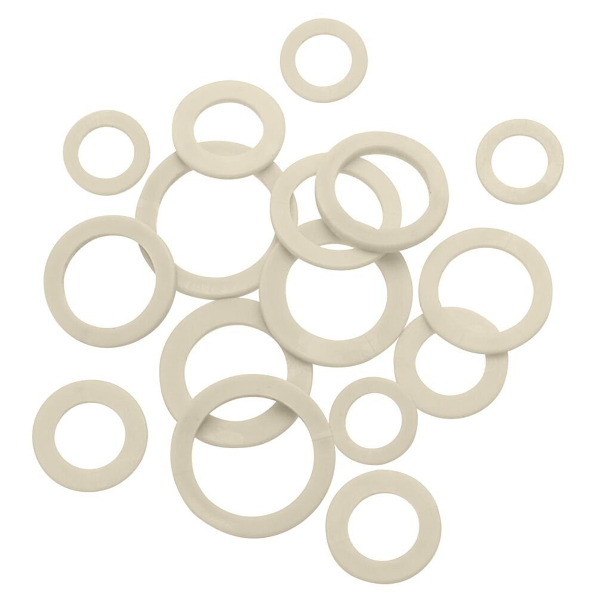 Het Tiger assortiment bevat 16 gummi ringen in verschillende maten zodat je altijd de juiste maat bij de hand hebt. Voor vrijwel iedere kraandiameter is een ronde rubberen ring beschikbaar: 1/2'',3/4'' 3/8'', M22, M24 en M28. Deze maten zijn universeel voor keukenkranen, fonteinkranen, wastafelkranen of bad- en douchekranen. Gebruik voor douchekoppen en doucheslang maat 1/2''.