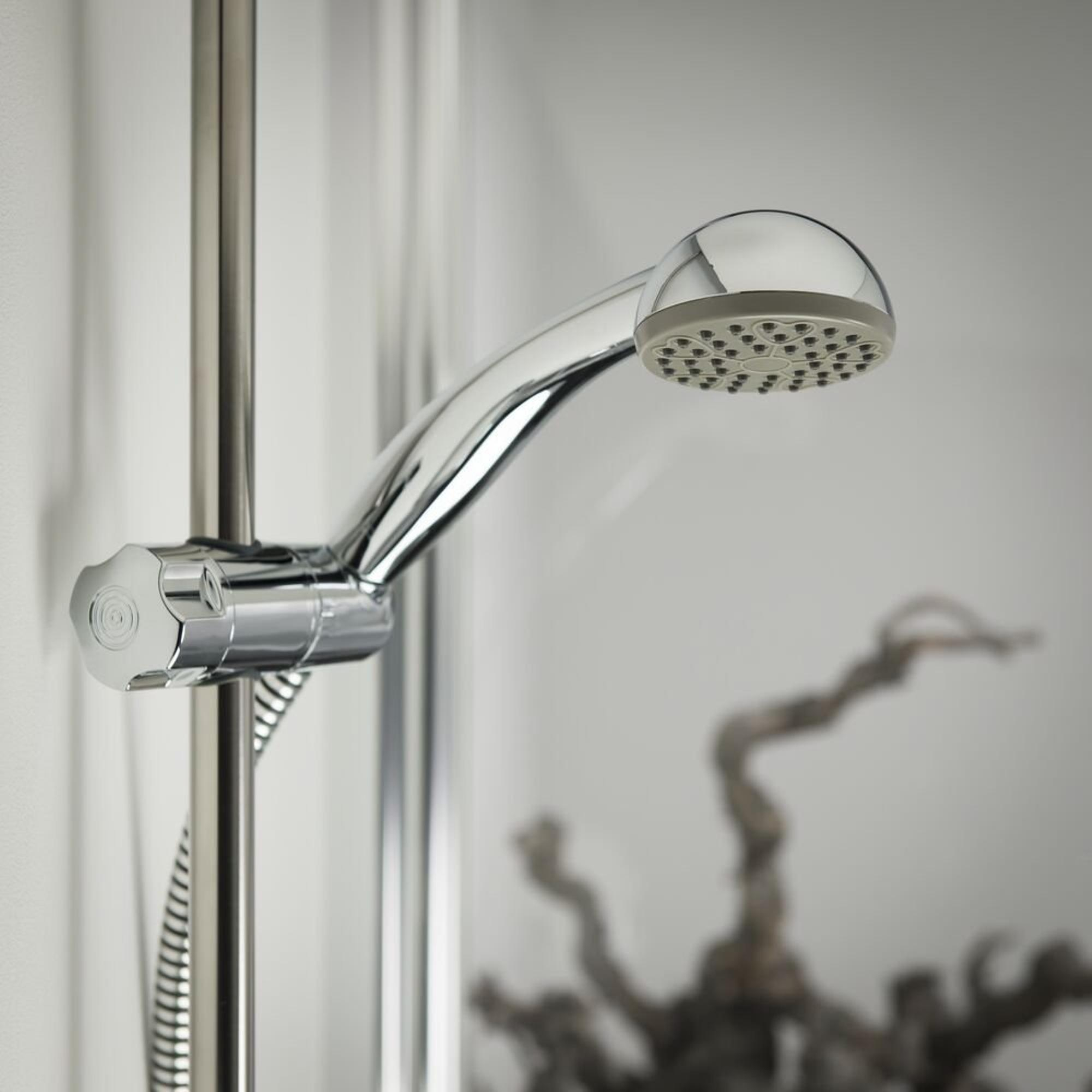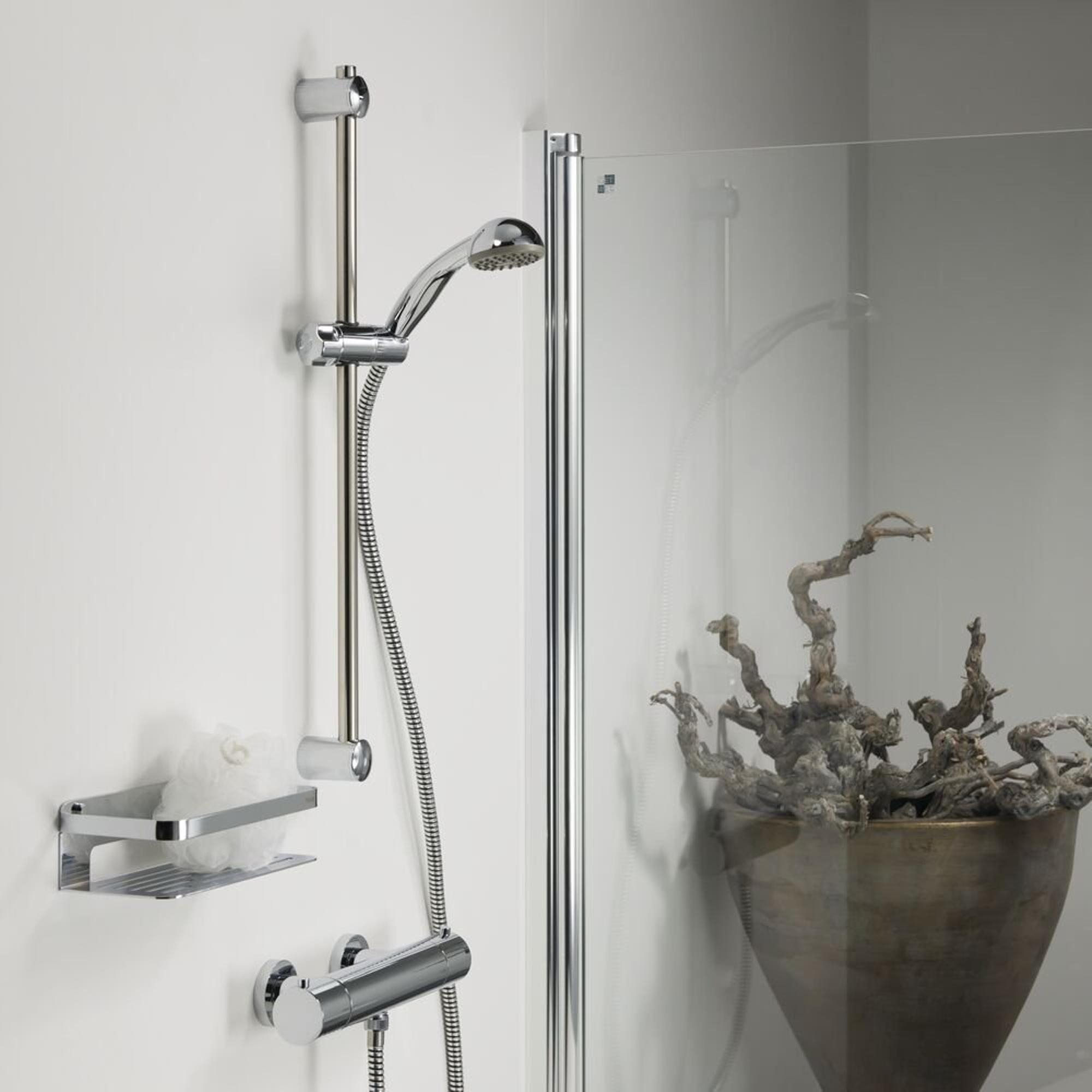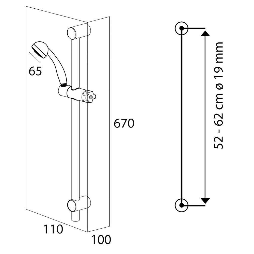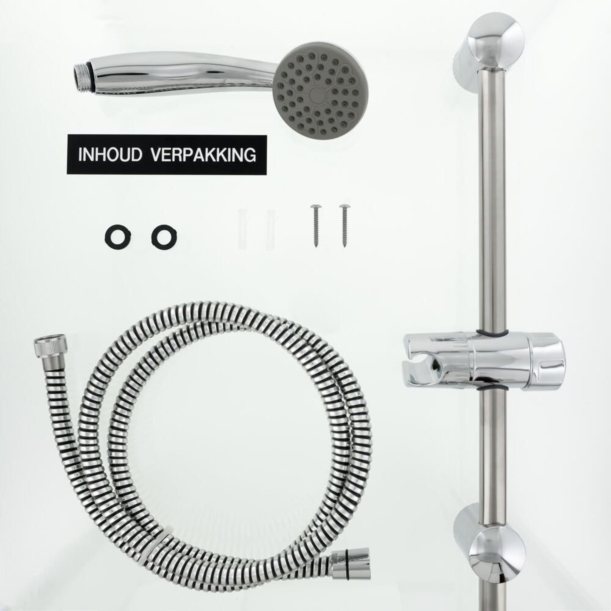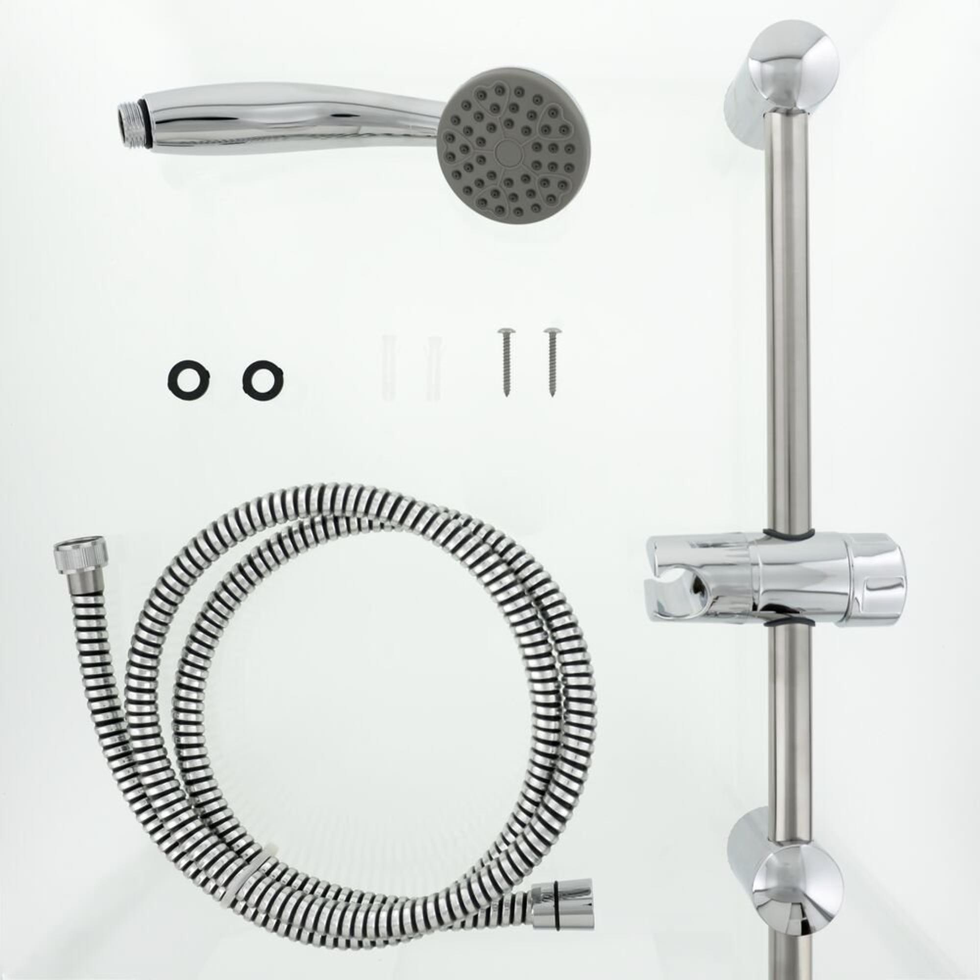 De Como doucheset is uitgevoerd in de kleur chroom en bestaat uit een handdouche, douchestang en doucheslang. De douchestang kan geplaatst worden op de plek van de oude doucheset, indien de ruimte tussen de twee steunen van de oude doucheset tussen de 52 cm en 62 cm is.