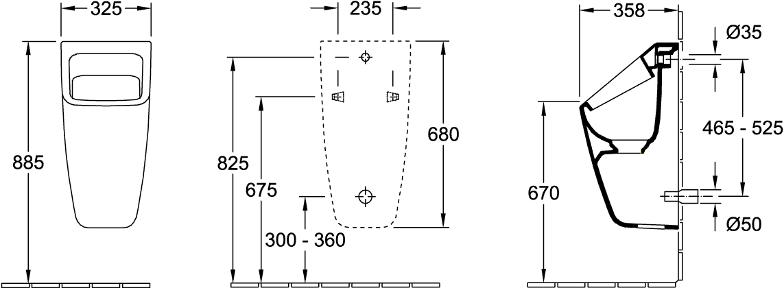 Villeroy & Boch Omnia Architectura urinoir hoekig met verdekte aan en afvoer wit
