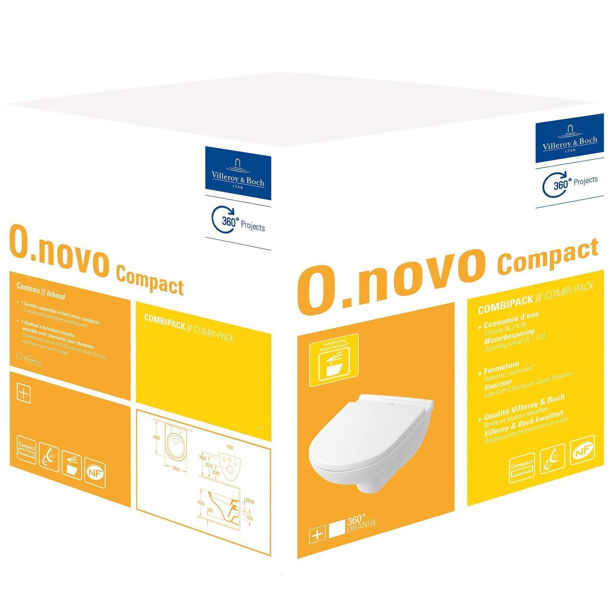 Villeroy & Boch O.novo combipack met wandcloset Compact en zitting met softclose en quick release wit