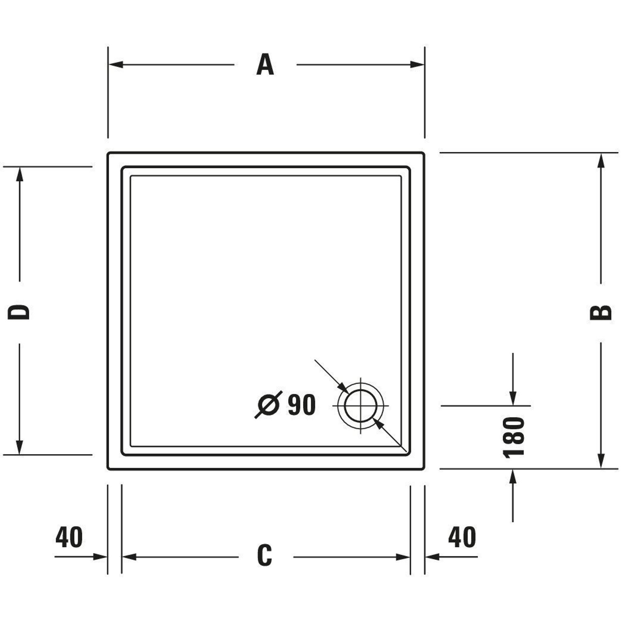 Duravit Starck Slimline douchebak acryl vierkant 90x90x4.5cm wit