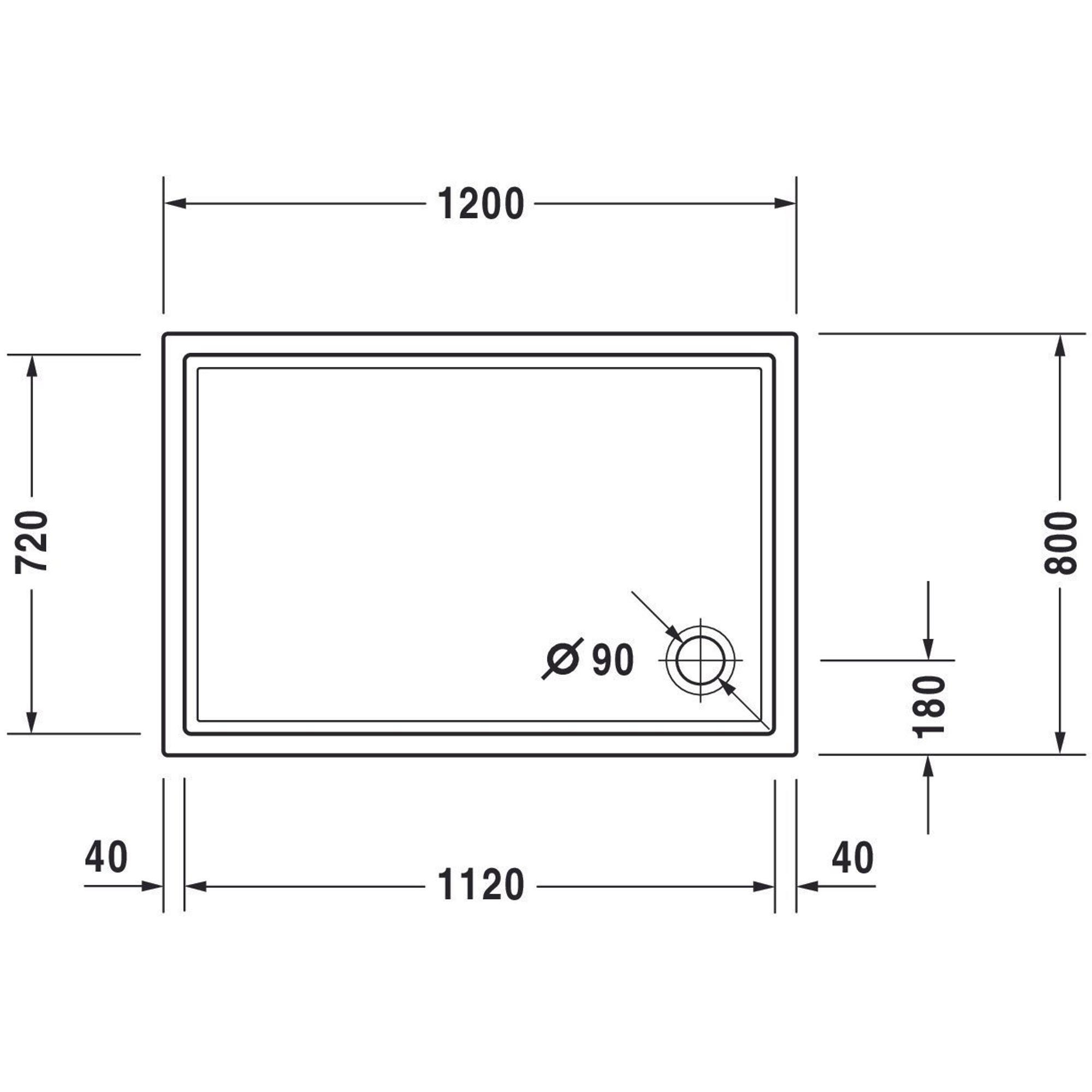 Duravit Starck Slimline douchebak acryl rechthoekig 120x80x5.5cm wit
