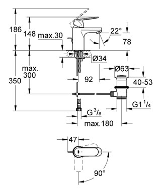 GROHE Eurosmart Cosmopolitan – Stijlvolle wastafelkraan met trek-waste en energiebesparingsfunctie Eurosmart Cosmopolitan is de moderne favoriet in de badkamer. De vormgeving weerspiegelt de kernwaarden van het minimalisme. De kranen zijn afgewerkt met glanzend GROHE StarLight® chroom. De kegelvormige overgang van het kraanhuis naar de greep zorgt voor een verfijnd design zonder concessies te doen aan de stevigheid.