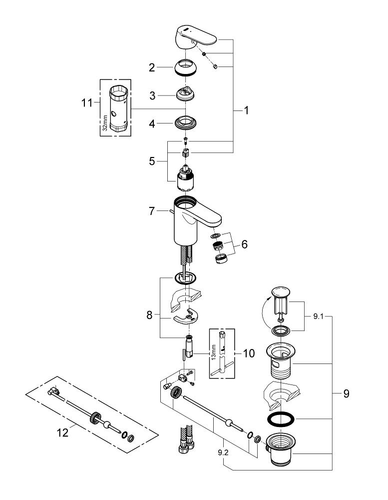 GROHE Eurosmart Cosmopolitan waterbesparende wastafelkraan met waste chroom