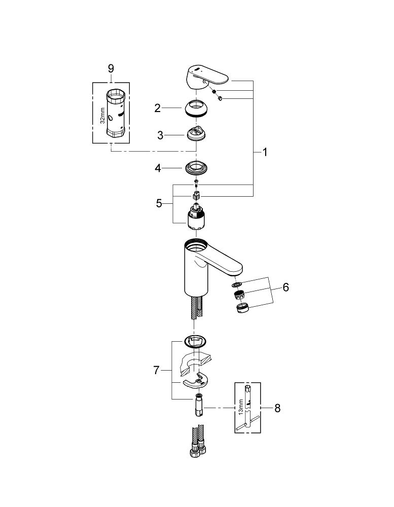 GROHE Eurosmart Cosmopolitan – Stijlvolle wastafelkraan met energiebesparingsfunctie Eurosmart Cosmopolitan is de moderne favoriet in de badkamer. De vormgeving weerspiegelt de kernwaarden van het minimalisme. De kranen zijn afgewerkt met glanzend GROHE StarLight® chroom. De kegelvormige overgang van het kraanhuis naar de greep zorgt voor een verfijnd design zonder concessies te doen aan de stevigheid.