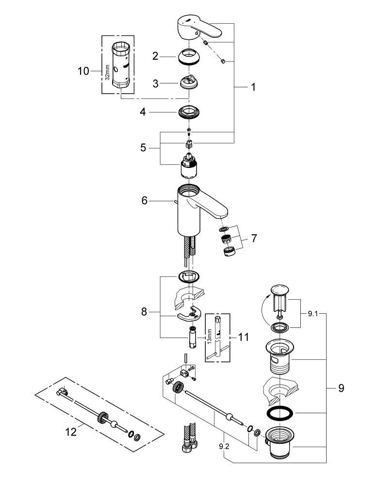 GROHE Eurostyle Cosmopolitan waterbesparende wastafelkraan met waste chroom