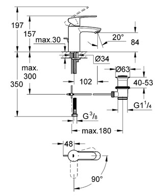 GROHE Eurostyle Cosmopolitan wastafelkraan met trek-waste en besparingsfunctie Eurostyle Cosmopolitan biedt een uniek design voor de moderne badkamer. De opvallende greep in de vorm van een sleutelgat staan onder een uitnodigende hoek van zeven graden. Het ontwerp is een slimme combinatie van eenvoudige gebogen lijnen en vloeiende vormen. De serie is voorzien van GROHE SilkMove® technologie om ervoor te zorgen dat de bediening van je badkamerkranen altijd soepel, nauwkeurig en eenvoudig is. Zelfs na jaren van dagelijks gebruik.