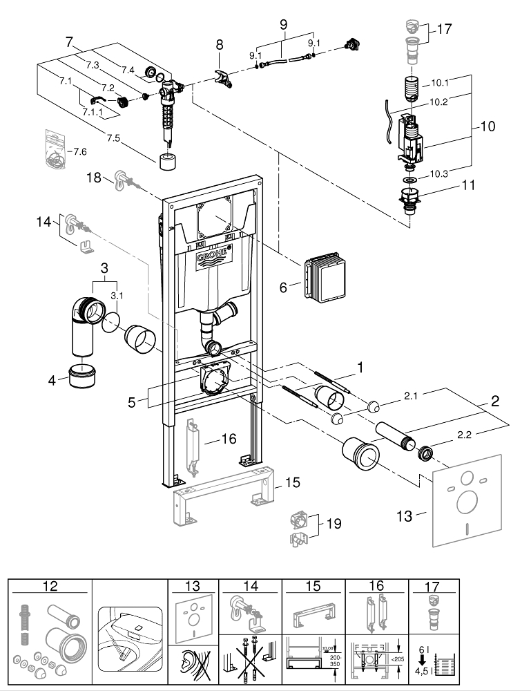 GROHE Rapid SL WC element voor voorwand of systeemwandmontage 113cm met aansluiting voor externe geurafzuiging