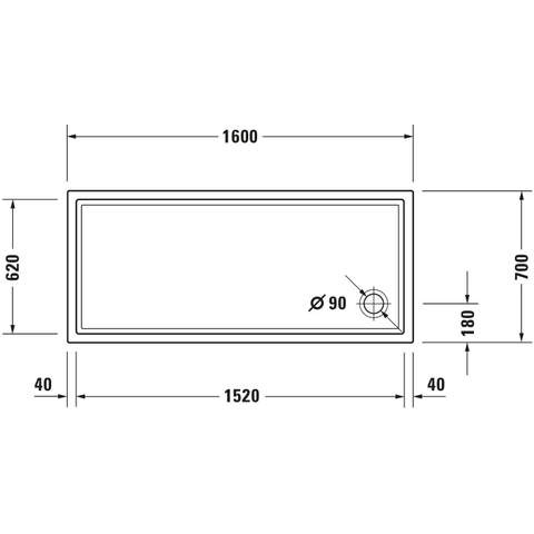 Duravit Starck slimline douchebak 160x70x6cm antislip wit