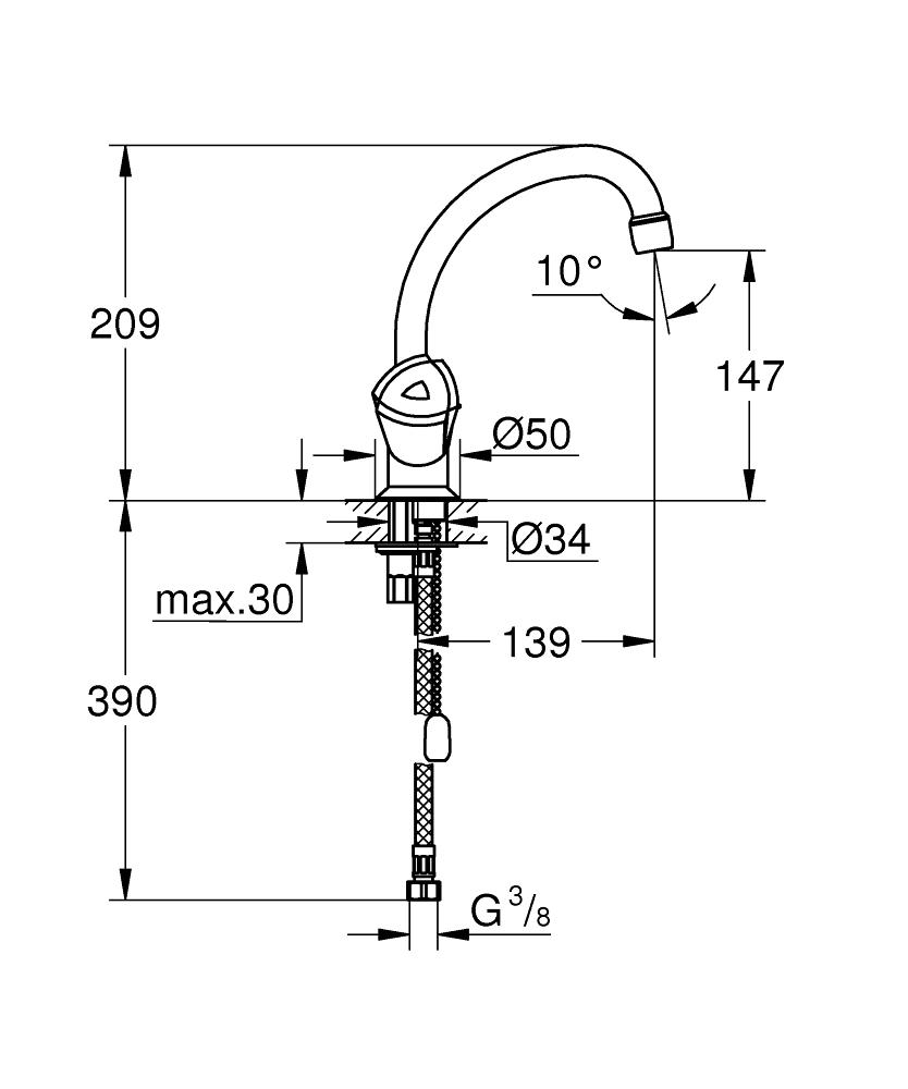 GROHE Costa Trend wastafelkraan met ketting chroom