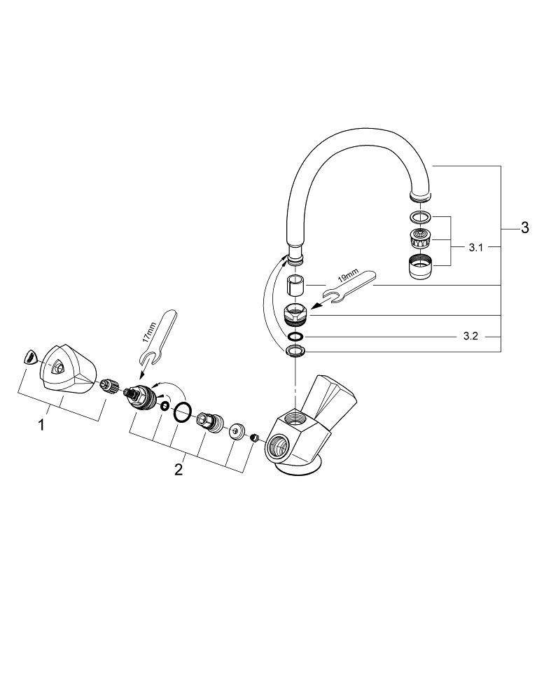 GROHE Zero interne kanalen, waardoor het water niet met de legering in contact komt