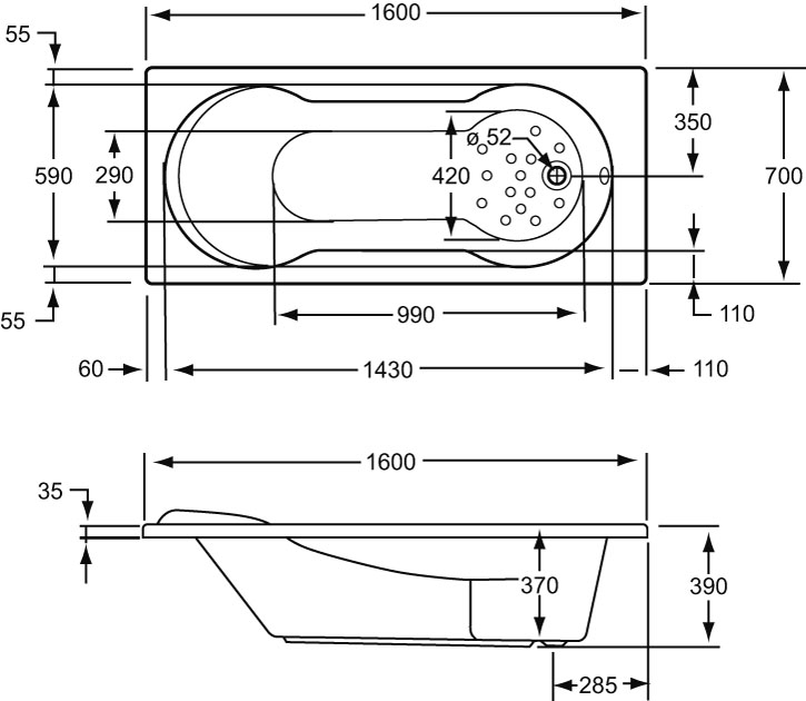 | Vorm binnenbad | Ovaal | |