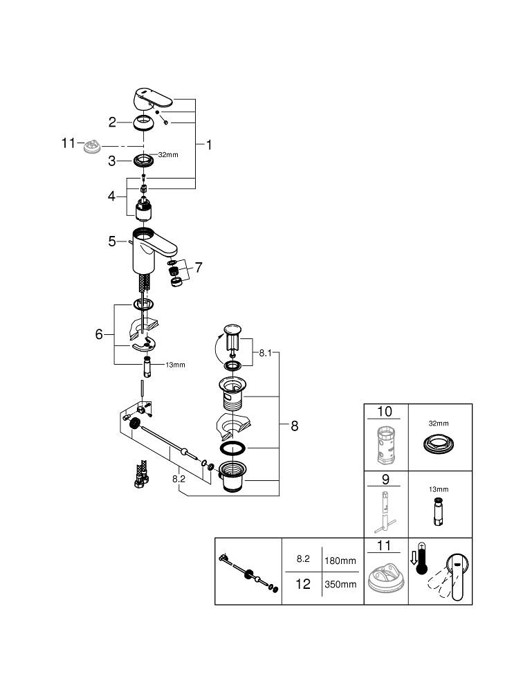 GROHE Get waterbesparende wastafelkraan met waste chroom