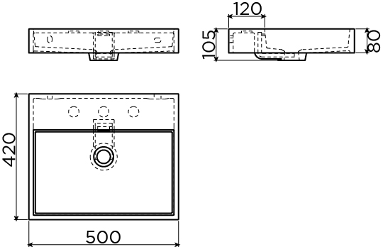 KraangatenDe wastafel heeft 3 voorbewerkte kraangaten zodat naar keuze 1-, 2- of 3-gats kranen gemonteerd kunnen worden. In de meegeleverde handleiding wordt uitgelegd hoe je een kraangat dient door te boren. Je kan echter ook kiezen om een wandkraan met deze wastafel te combineren. Dit maakt dat de wastafel nog beter te reinigen is.