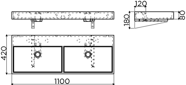 Clou Wash Me dubbele wastafel aluite B110xH8xD42cm