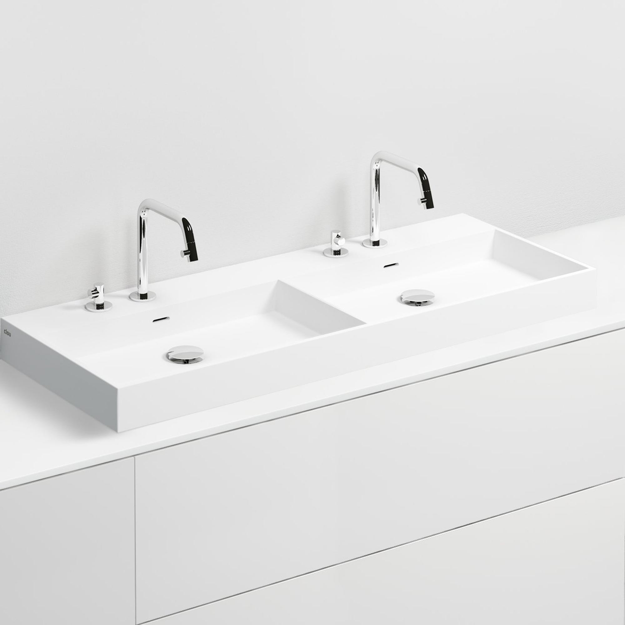 Clou Wash Me wastafel 110x42cm dubbel zonder plug aluite Wit mat