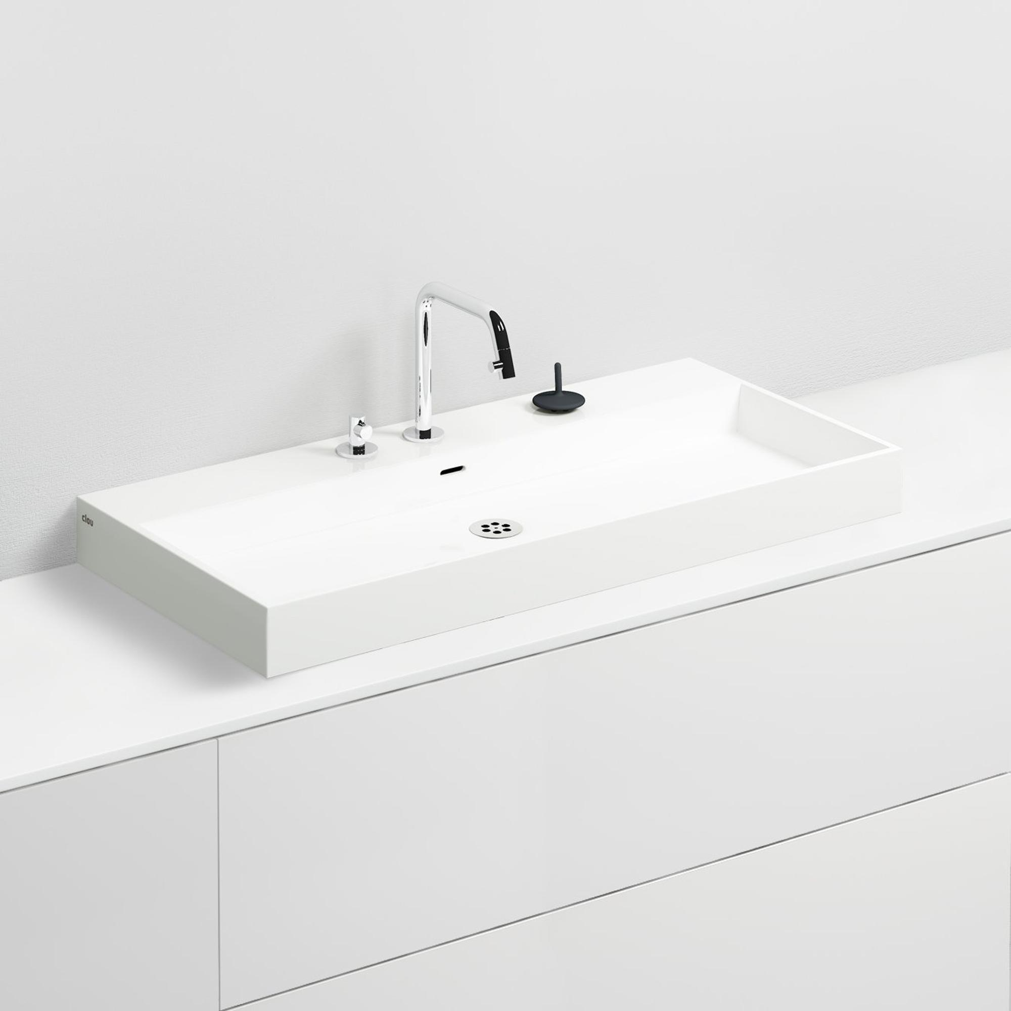 Clou Wash Me wastafel 90x42cm zonder plug mineraalsteen Wit