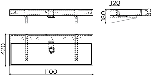 KraangatenDe wastafel heeft 7 voorbewerkte kraangaten zodat naar keuze 1-, 2- of 3-gats kranen gemonteerd kunnen worden maar ook twee kranen. In de meegeleverde handleiding wordt uitgelegd hoe je een kraangat dient door te boren. Je kan echter ook kiezen om een wandkraan met deze wastafel te combineren. Dit maakt dat de wastafel nog beter te reinigen is.